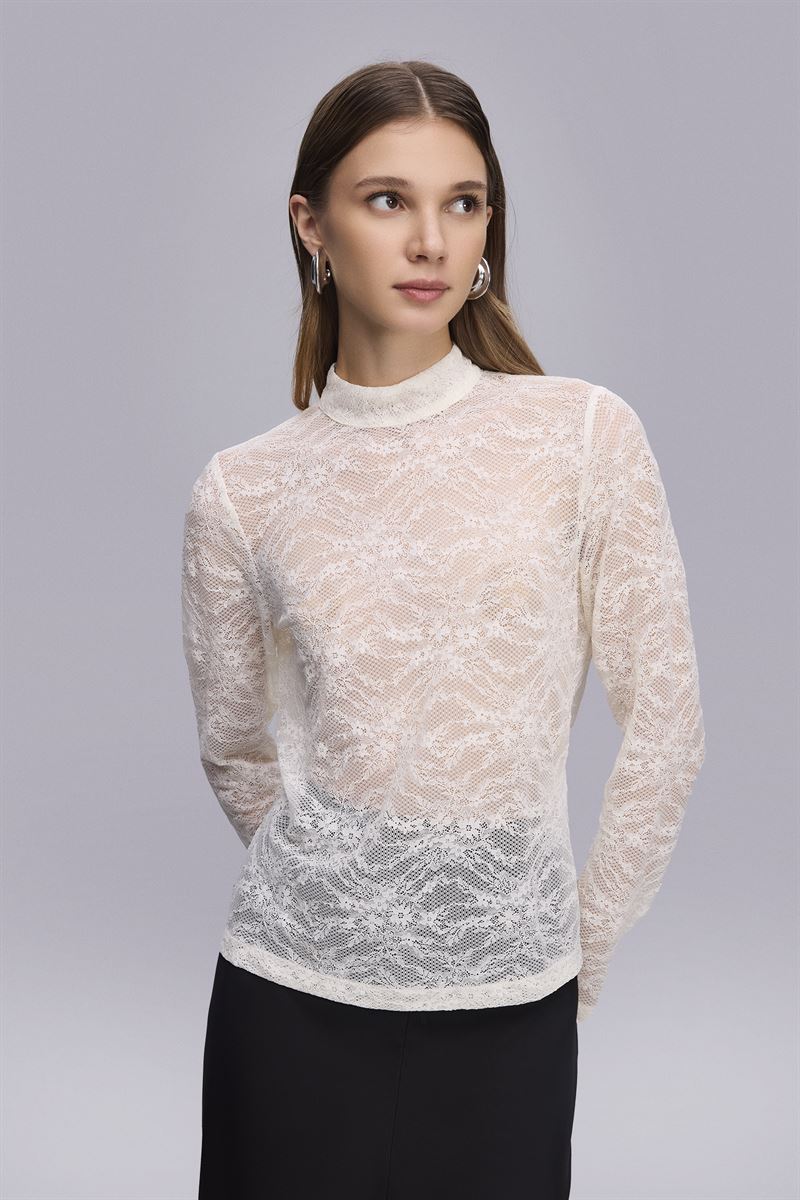 Dik Yaka Krem Dantel Bluz