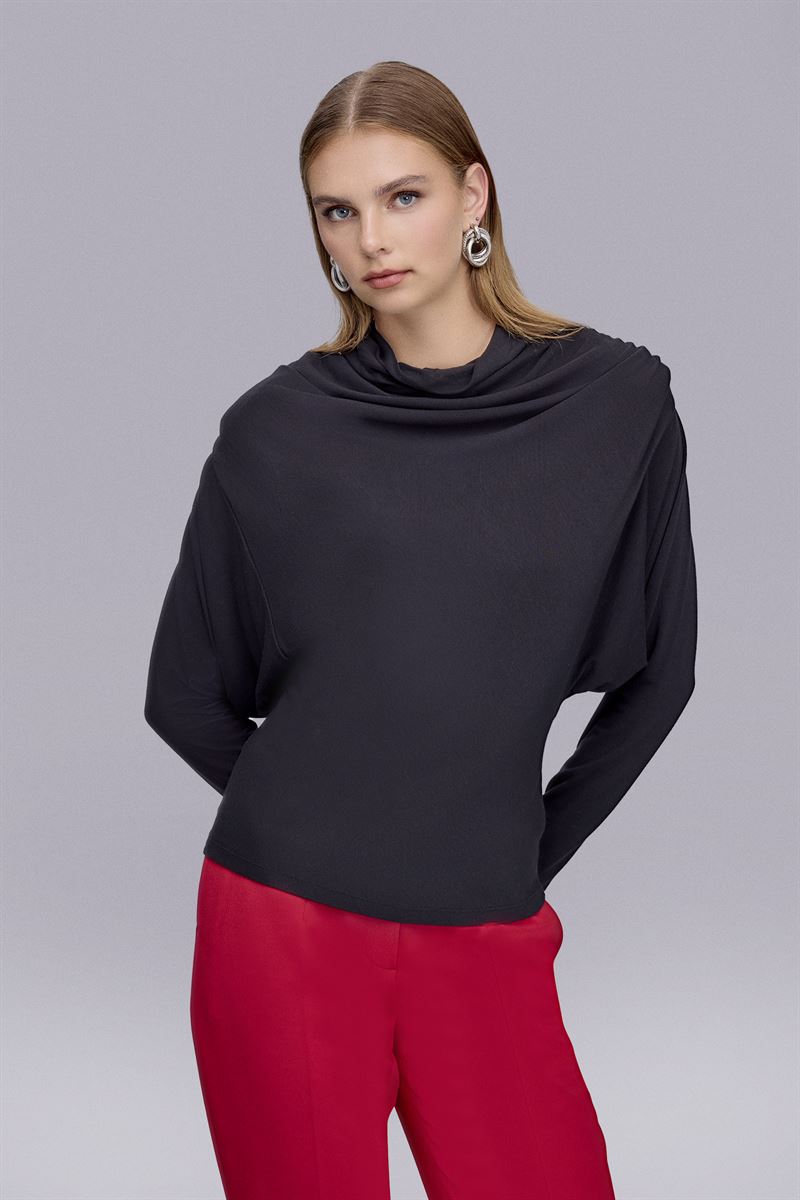 Büzgü Detaylı Siyah Örme Bluz