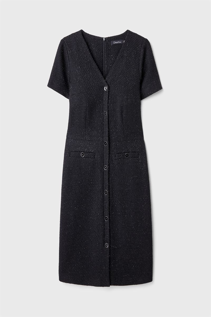 Önden Düğmeli Siyah Tüvit Elbise