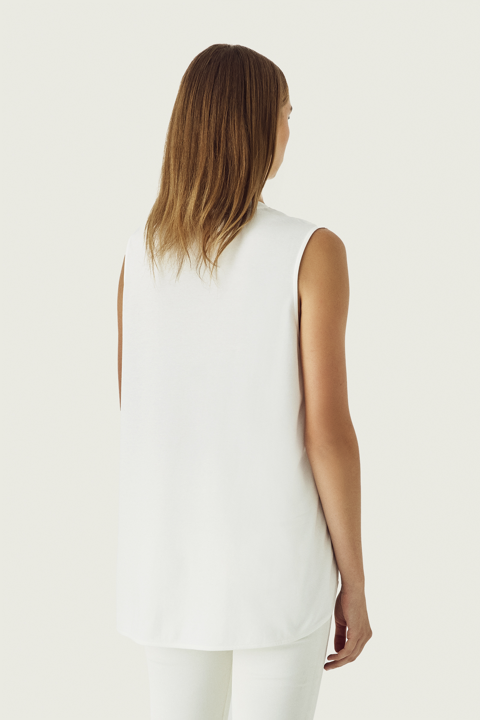 Taşlı Kalp Baskılı Kolsuz Ekru T-Shirt