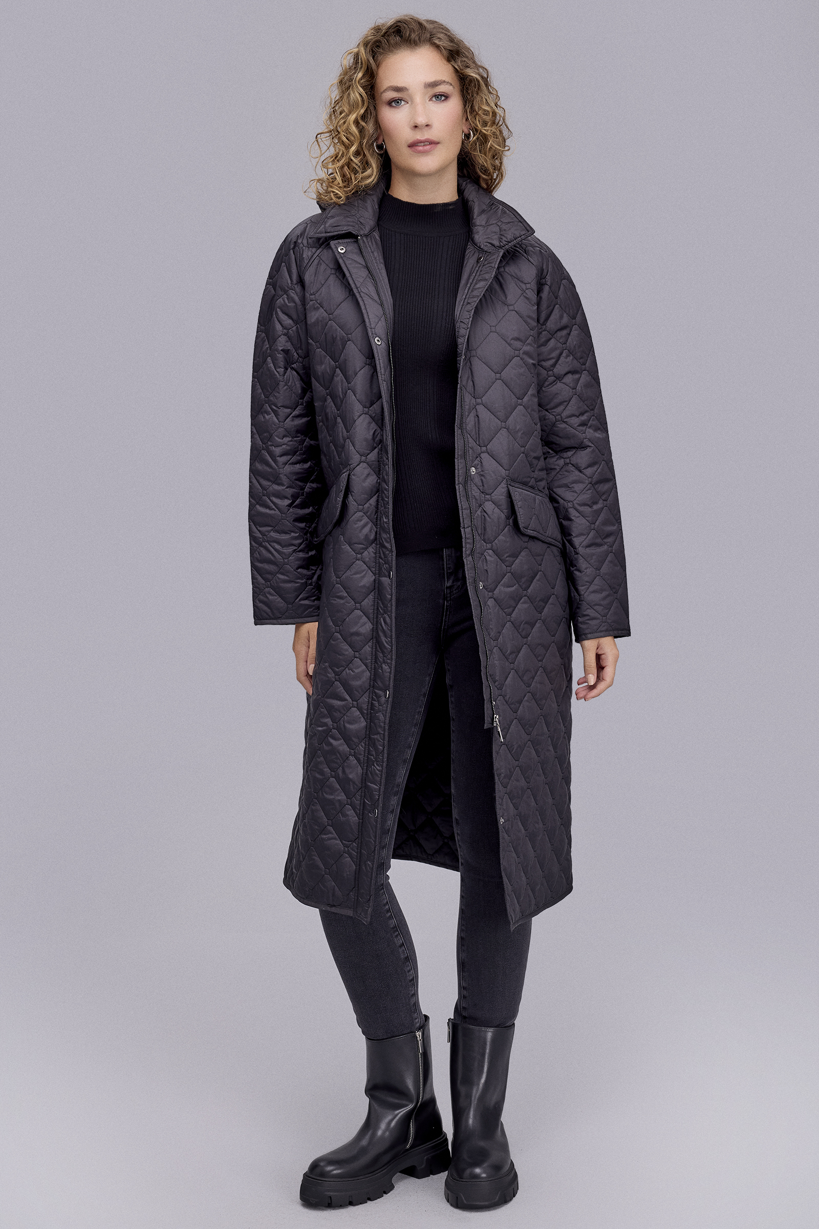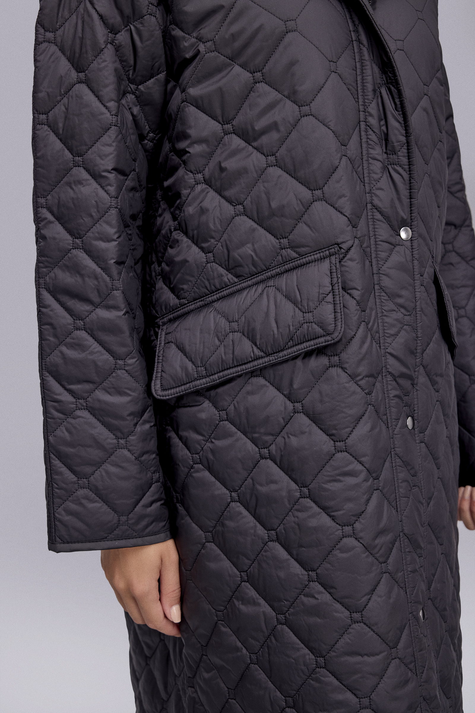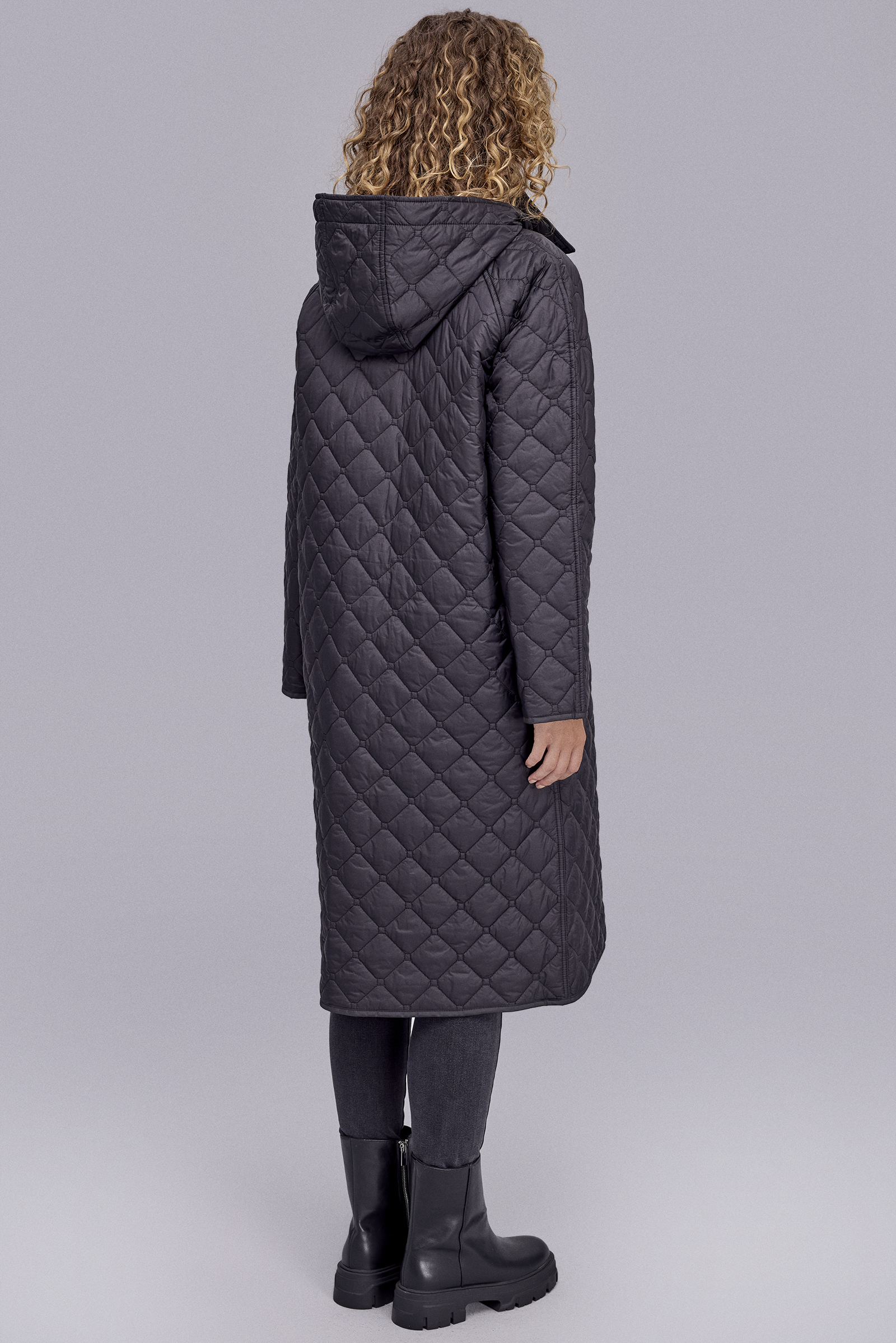 Kapitone Kapüşonlu Uzun Siyah Mont