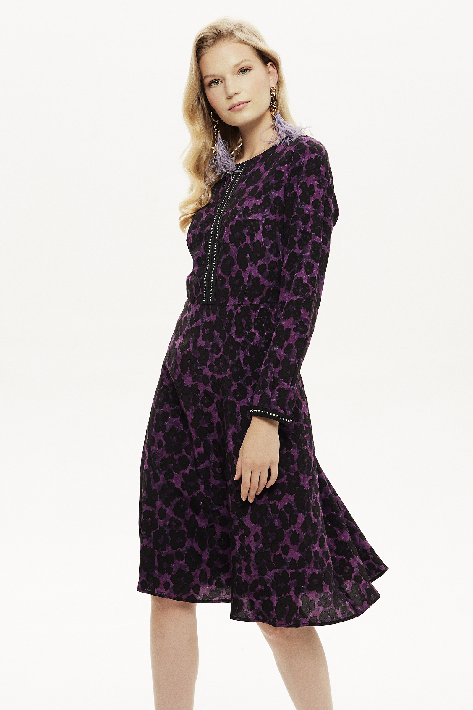 Şerit Aksesuarlı Jakarlı Elbise