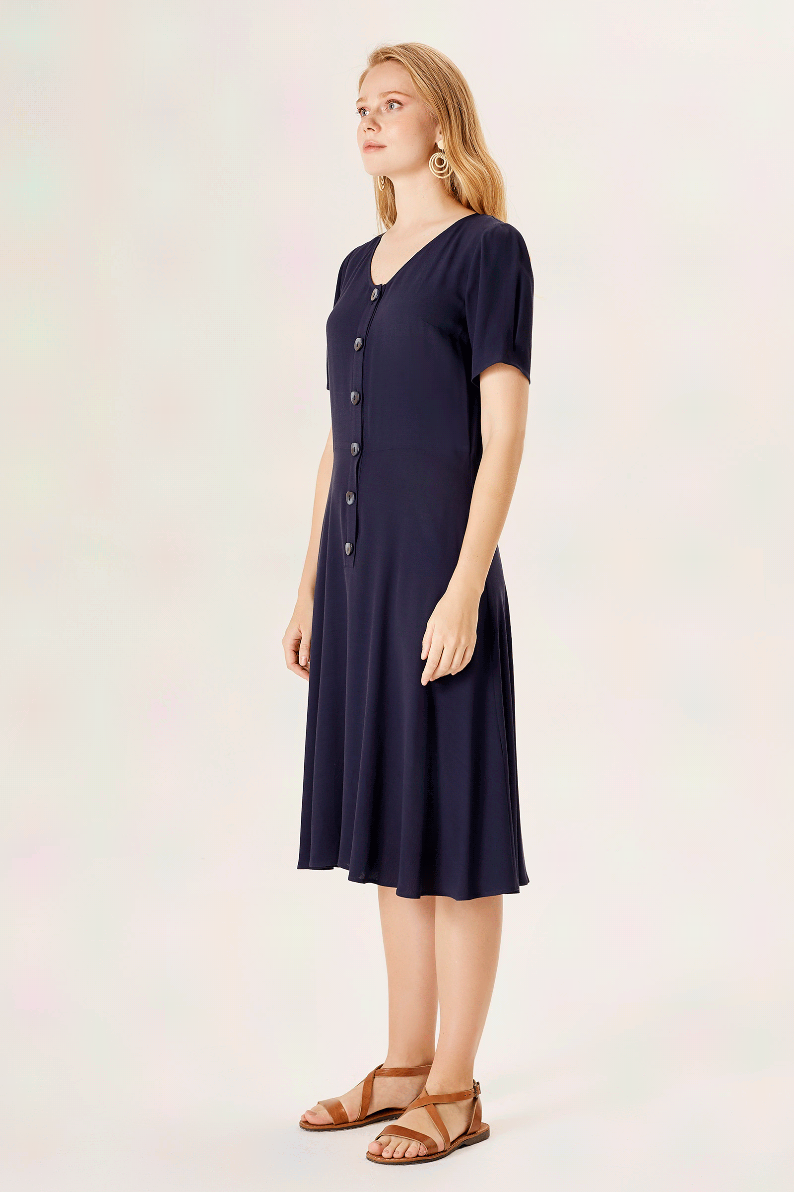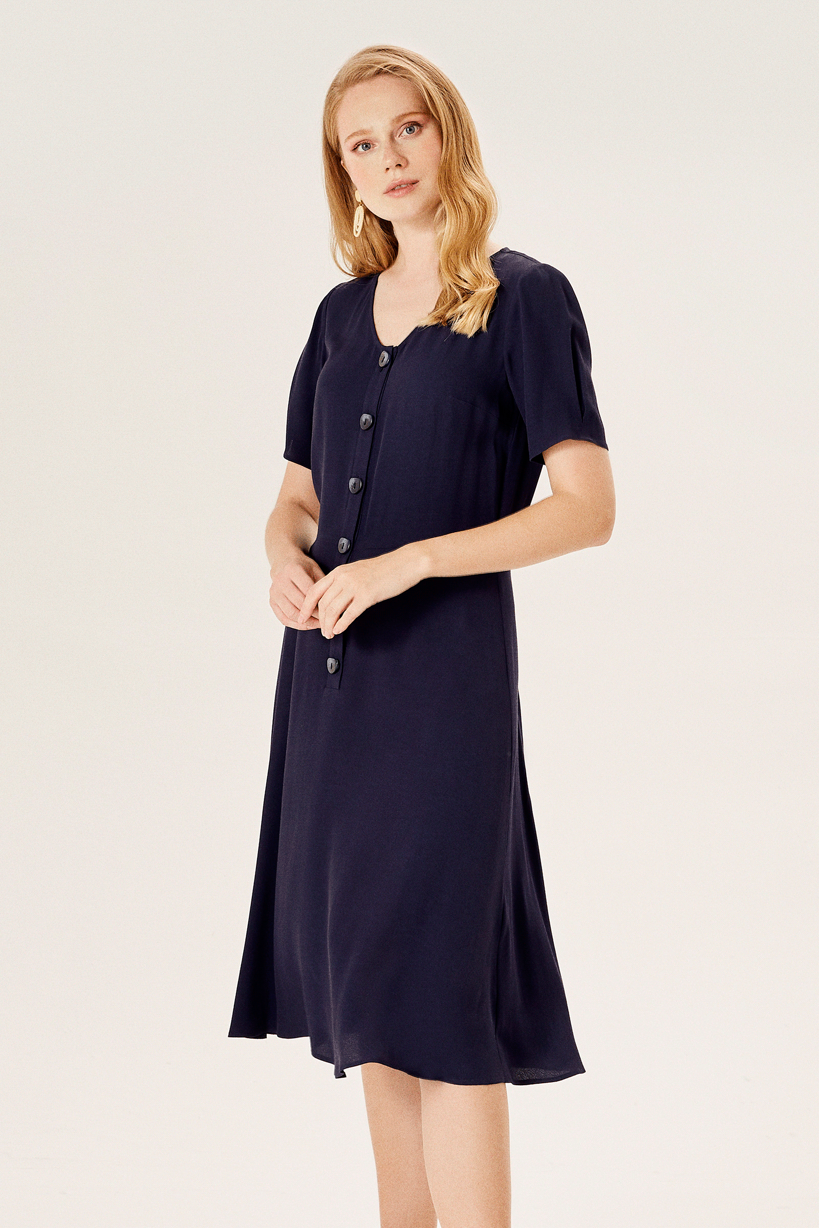 V Yaka Düğmeli Elbise