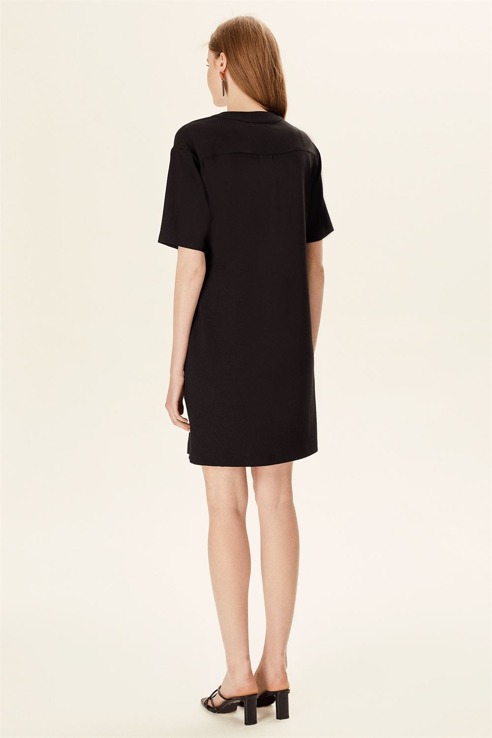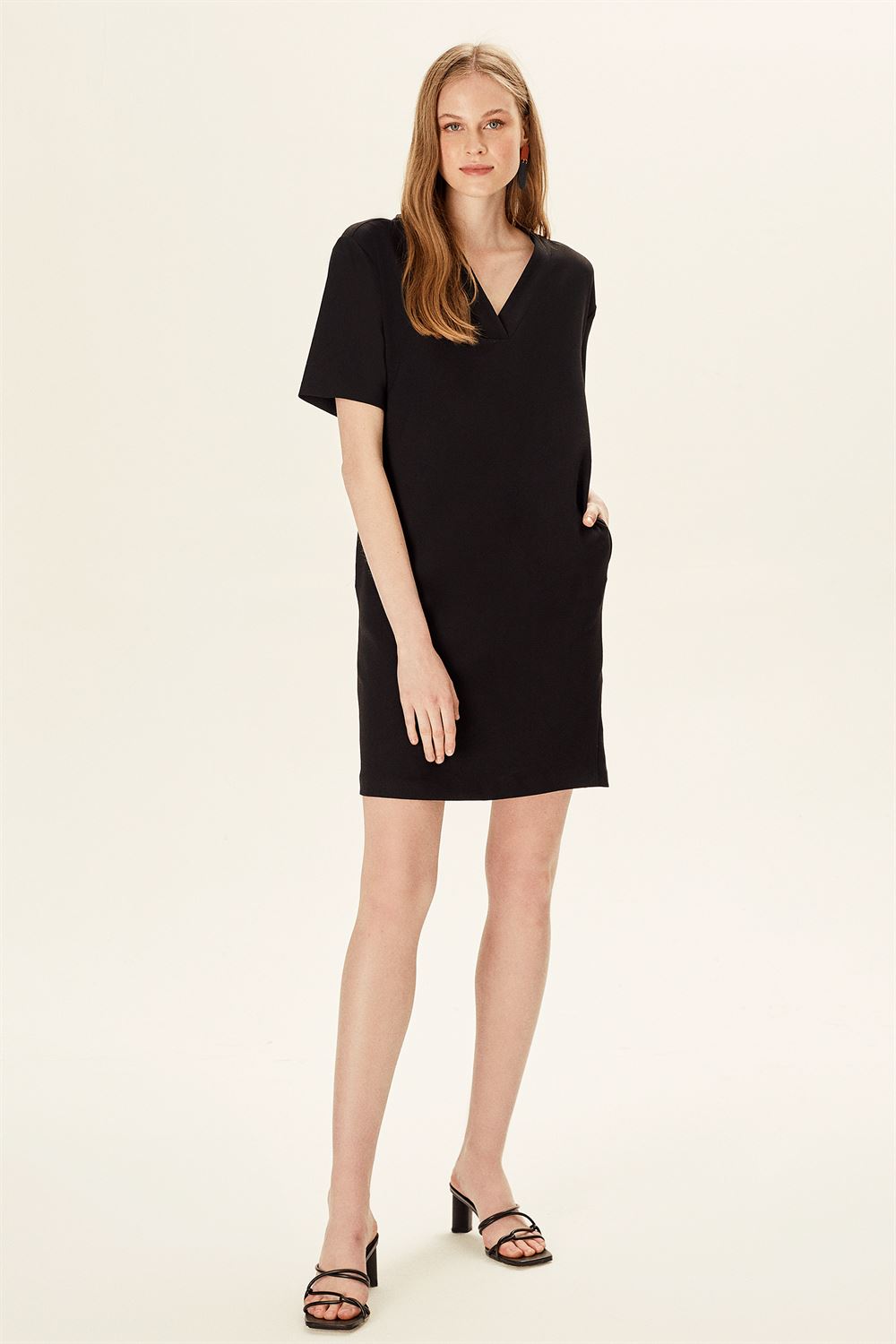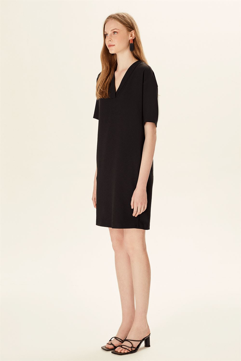 Yarım Kollu V Yakalı Pile Detaylı Elbise
