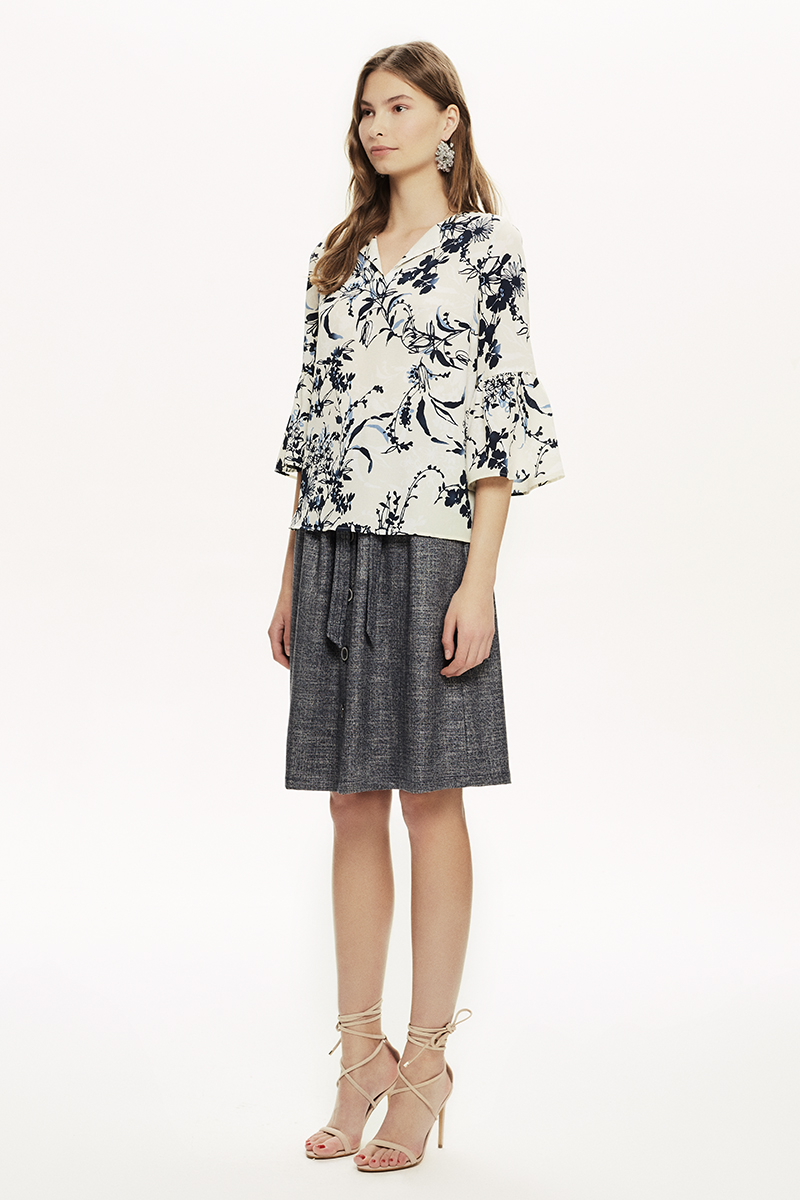 Omuzları Düğmeli Ekru Bluz