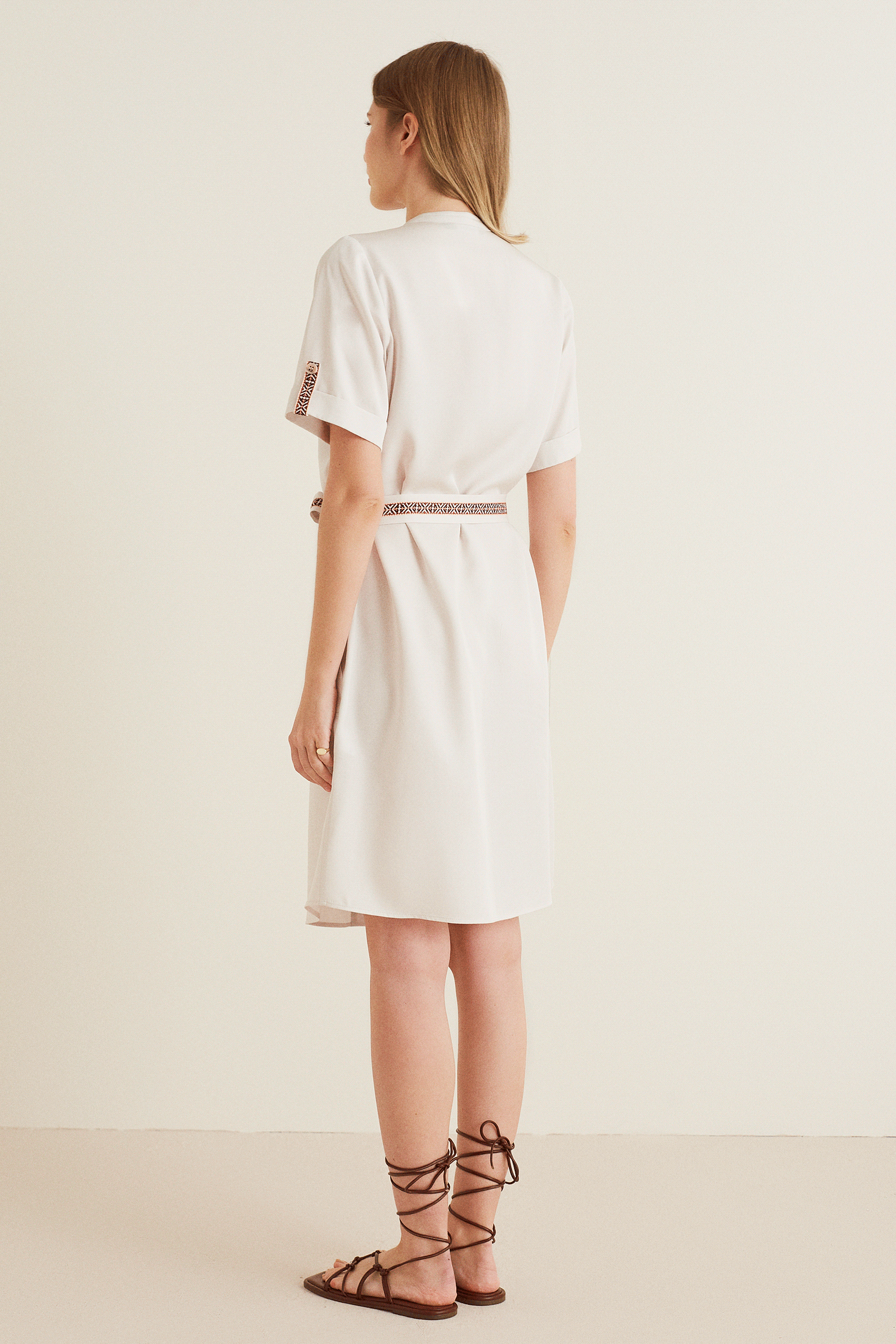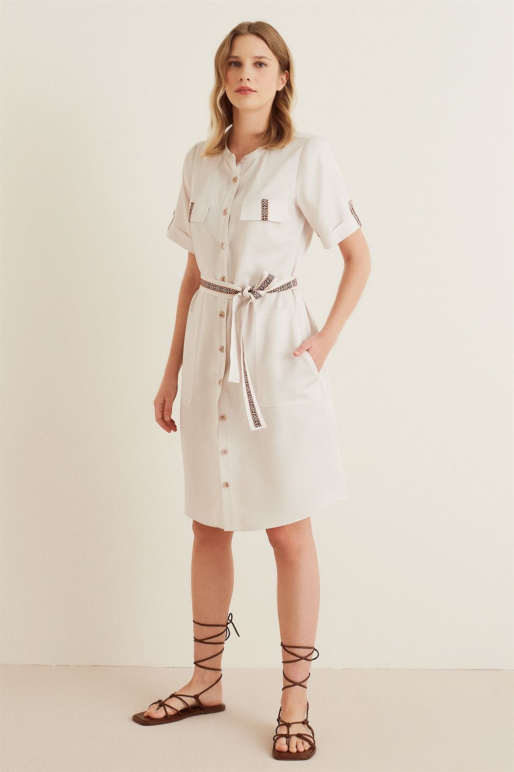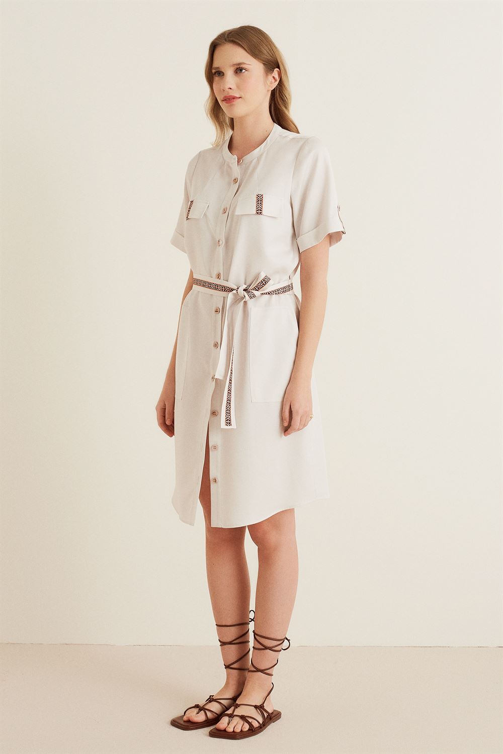 Etnik Şerit Aksesuarlı Gömlek Elbise