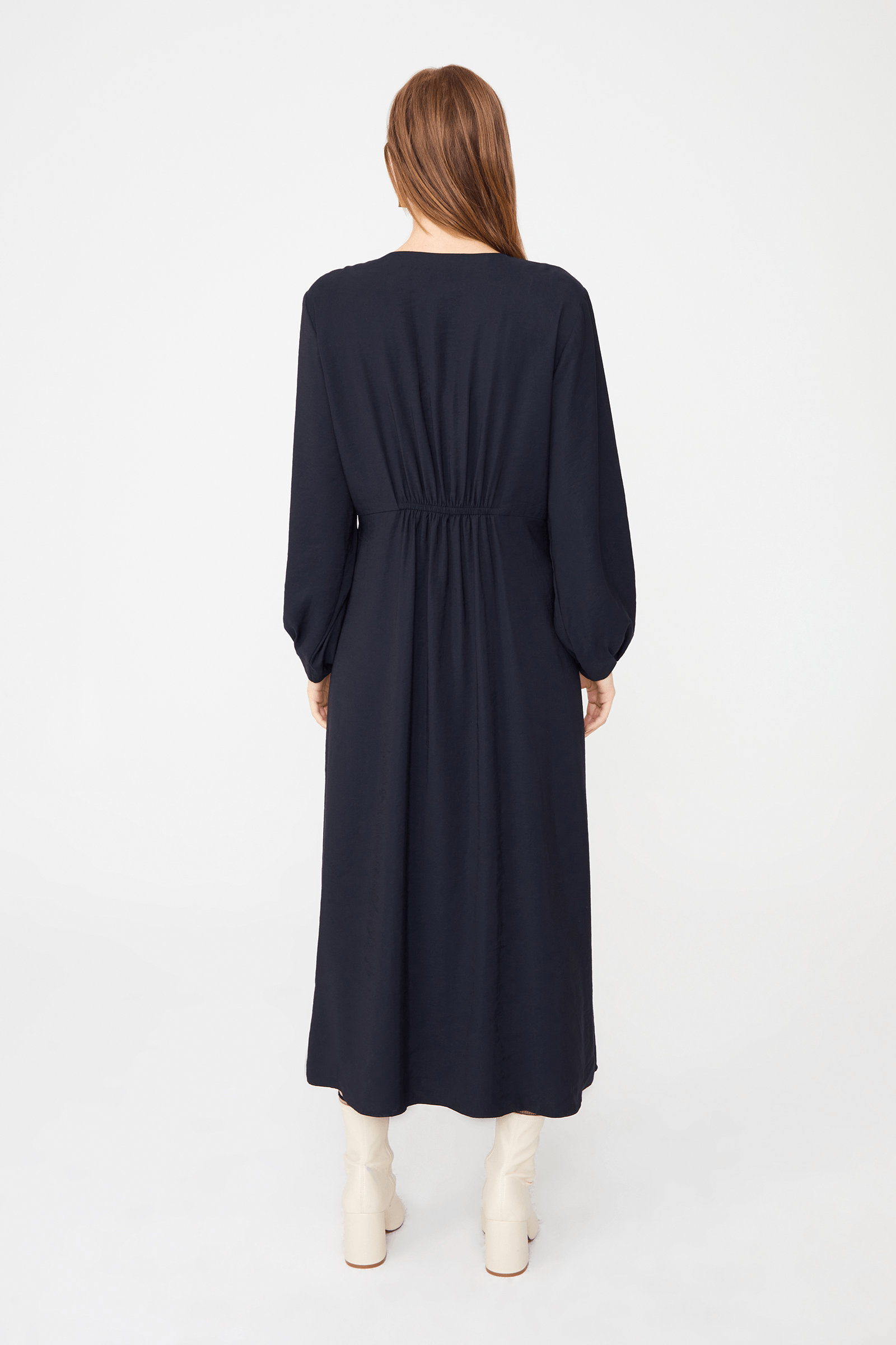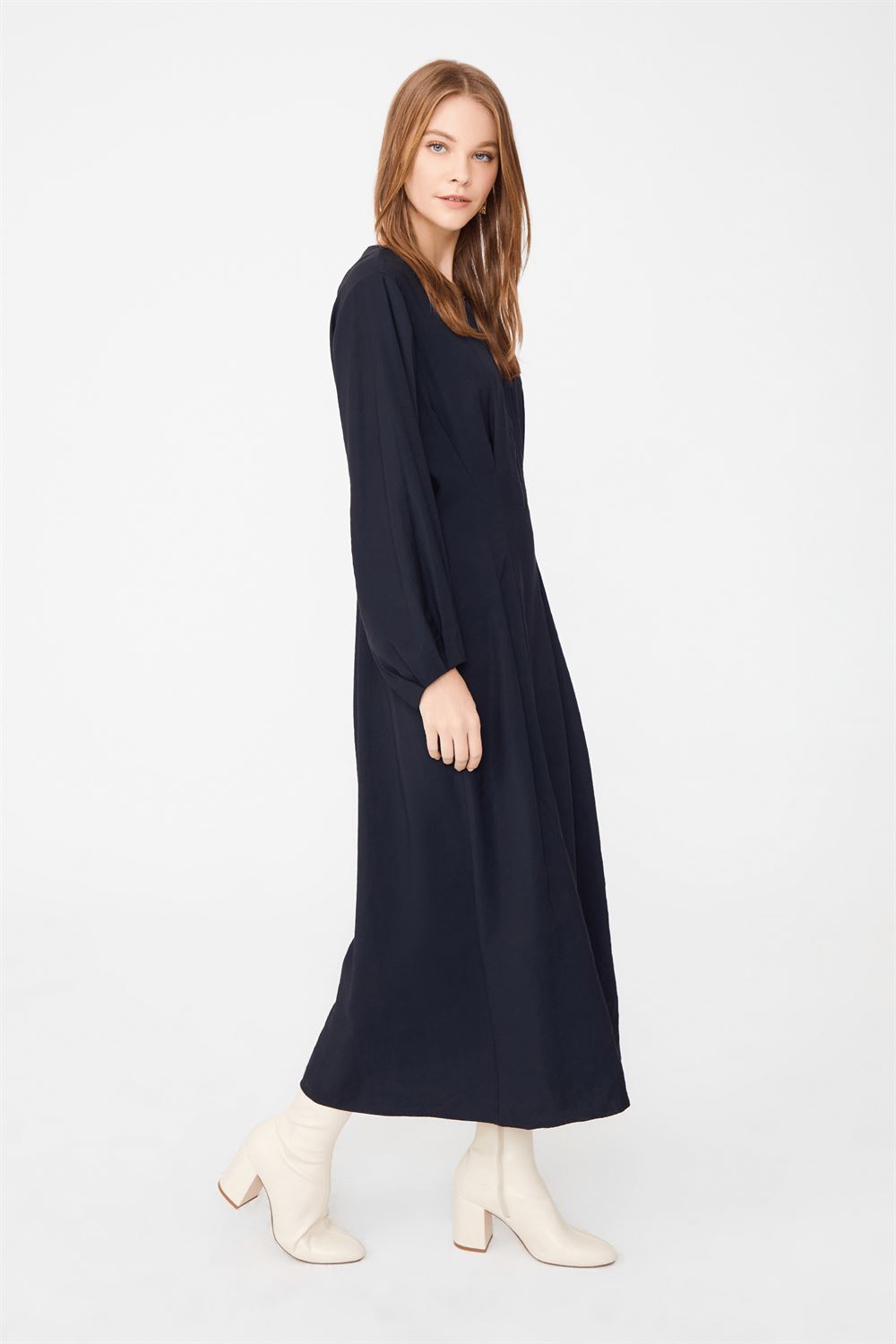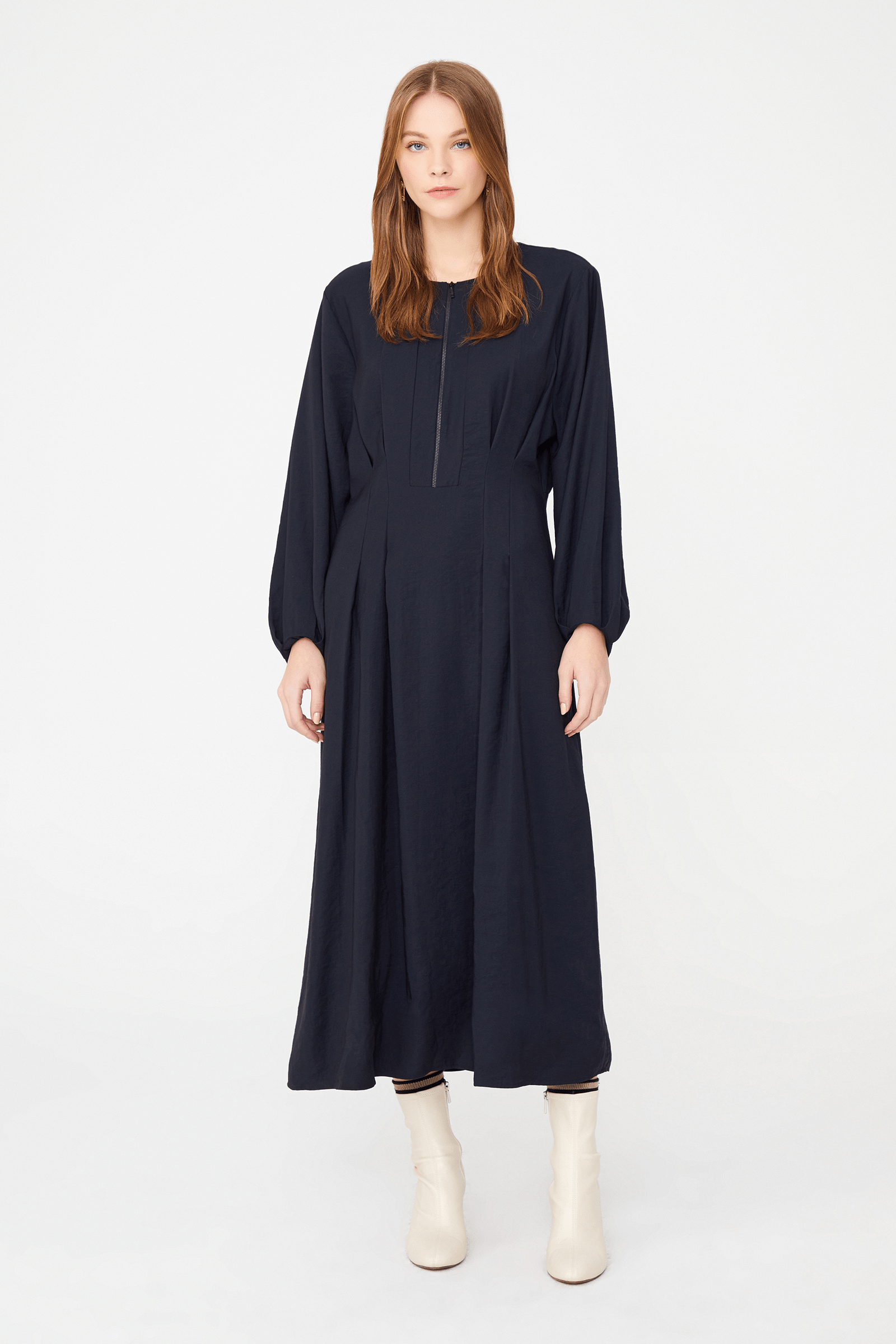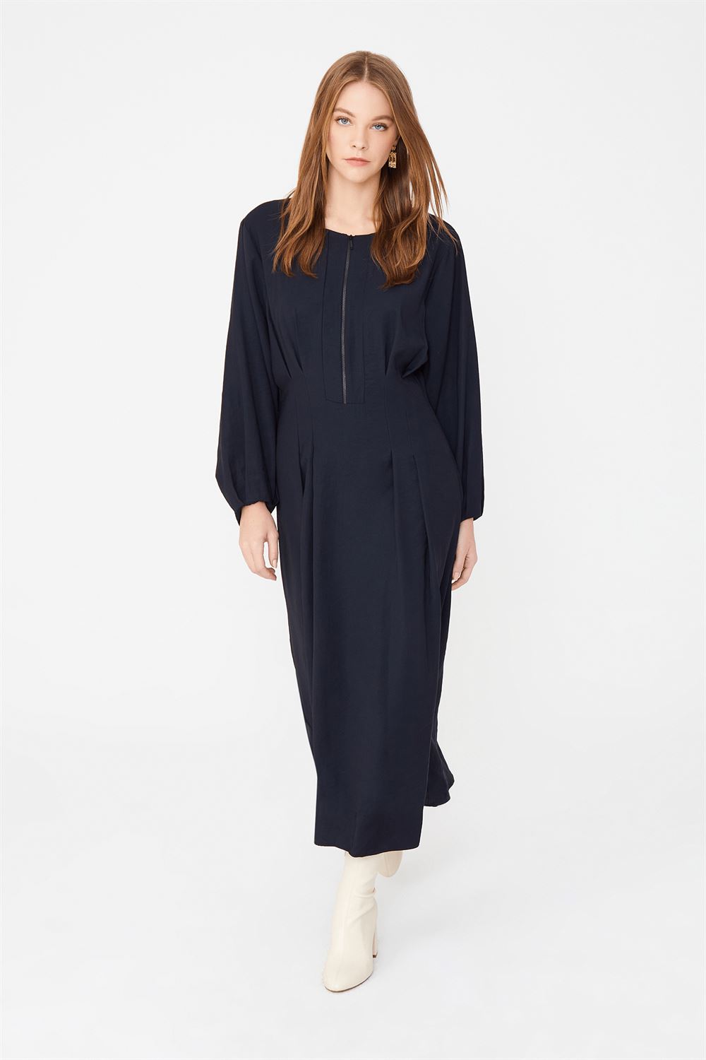 Yakası Fermuarlı Midi Boy Elbise