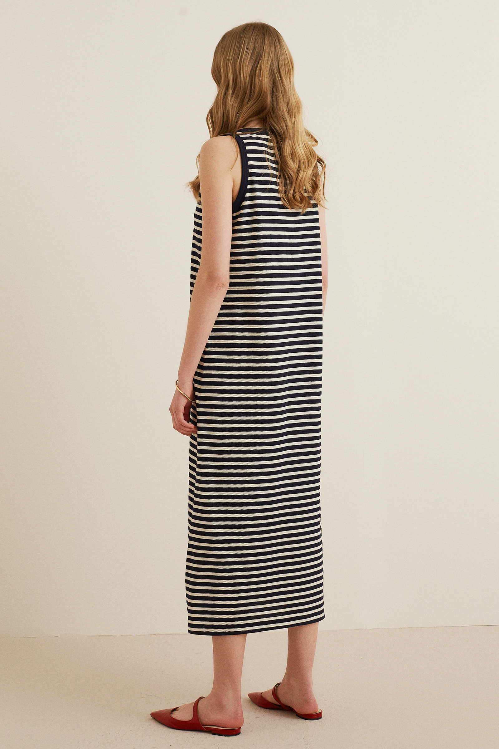 Çizgili Midi Boy Penye Elbise