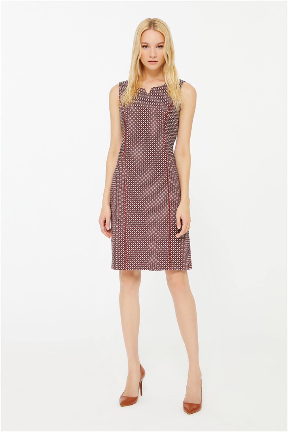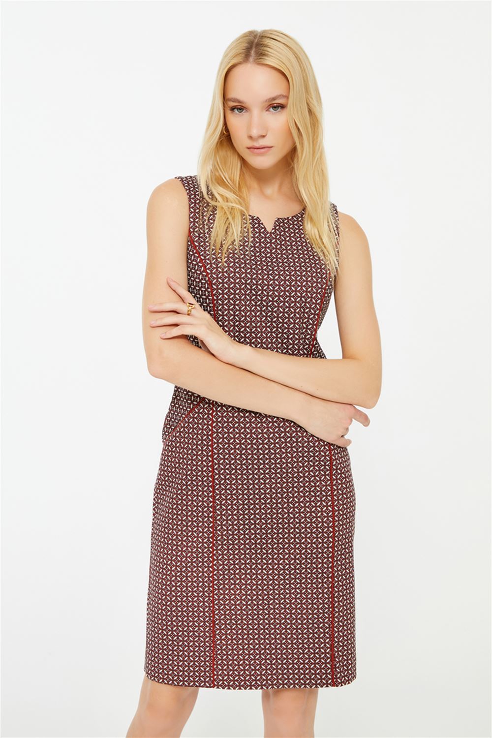 Büzgü Detaylı Şal Desen Uzun Elbise
