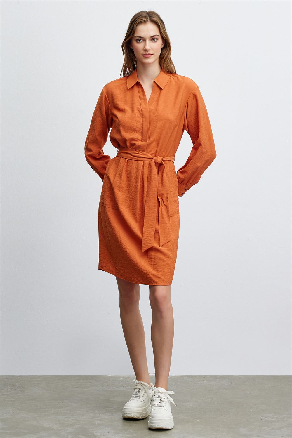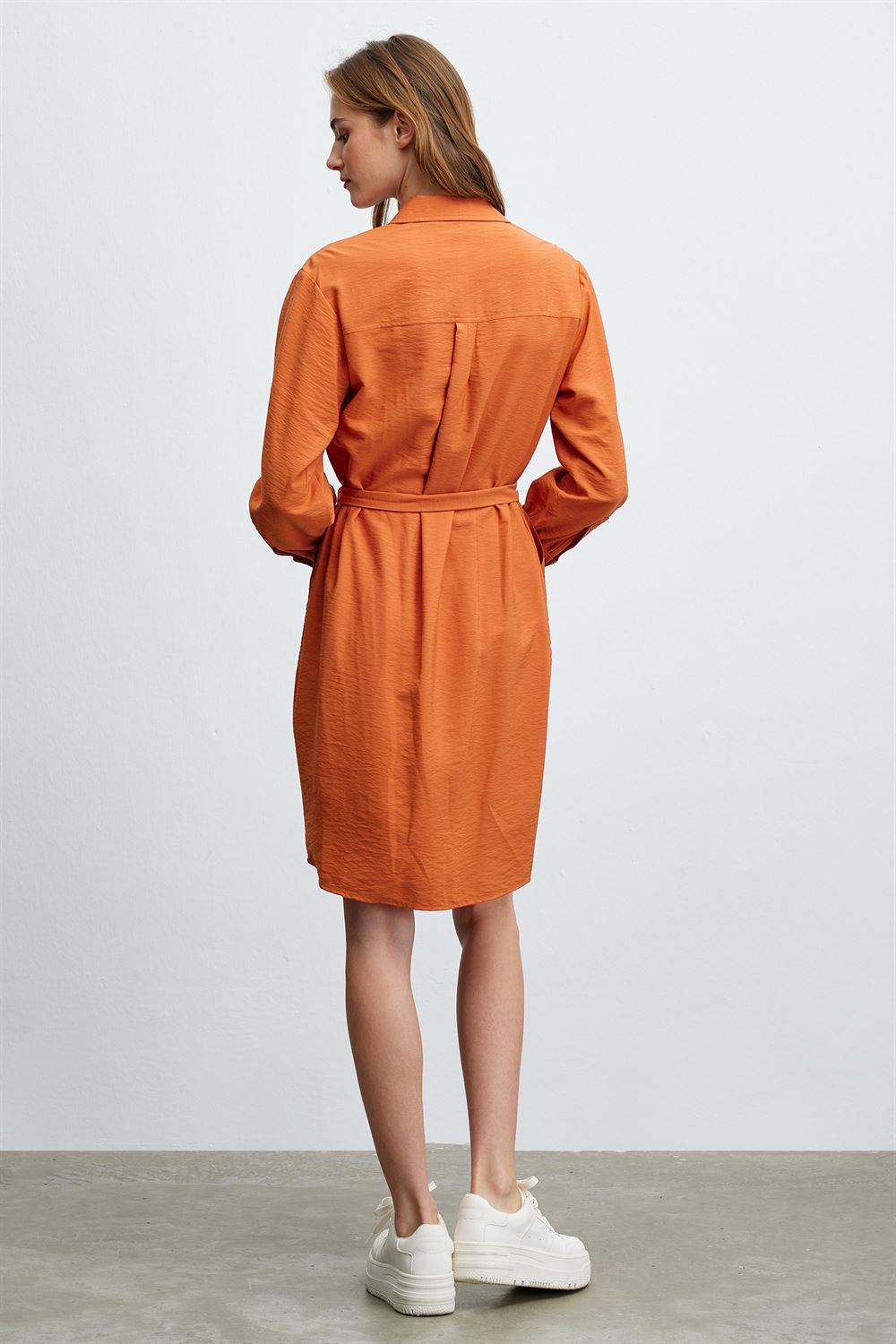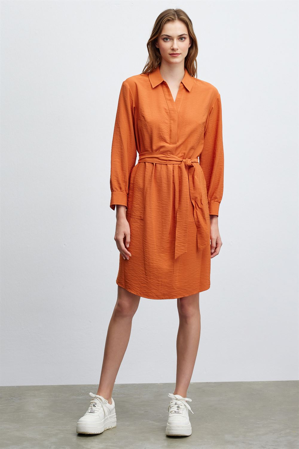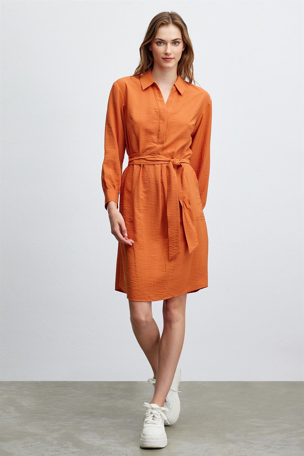 Gömlek Yaka Kuşaklı Elbise