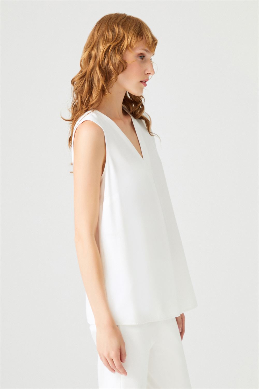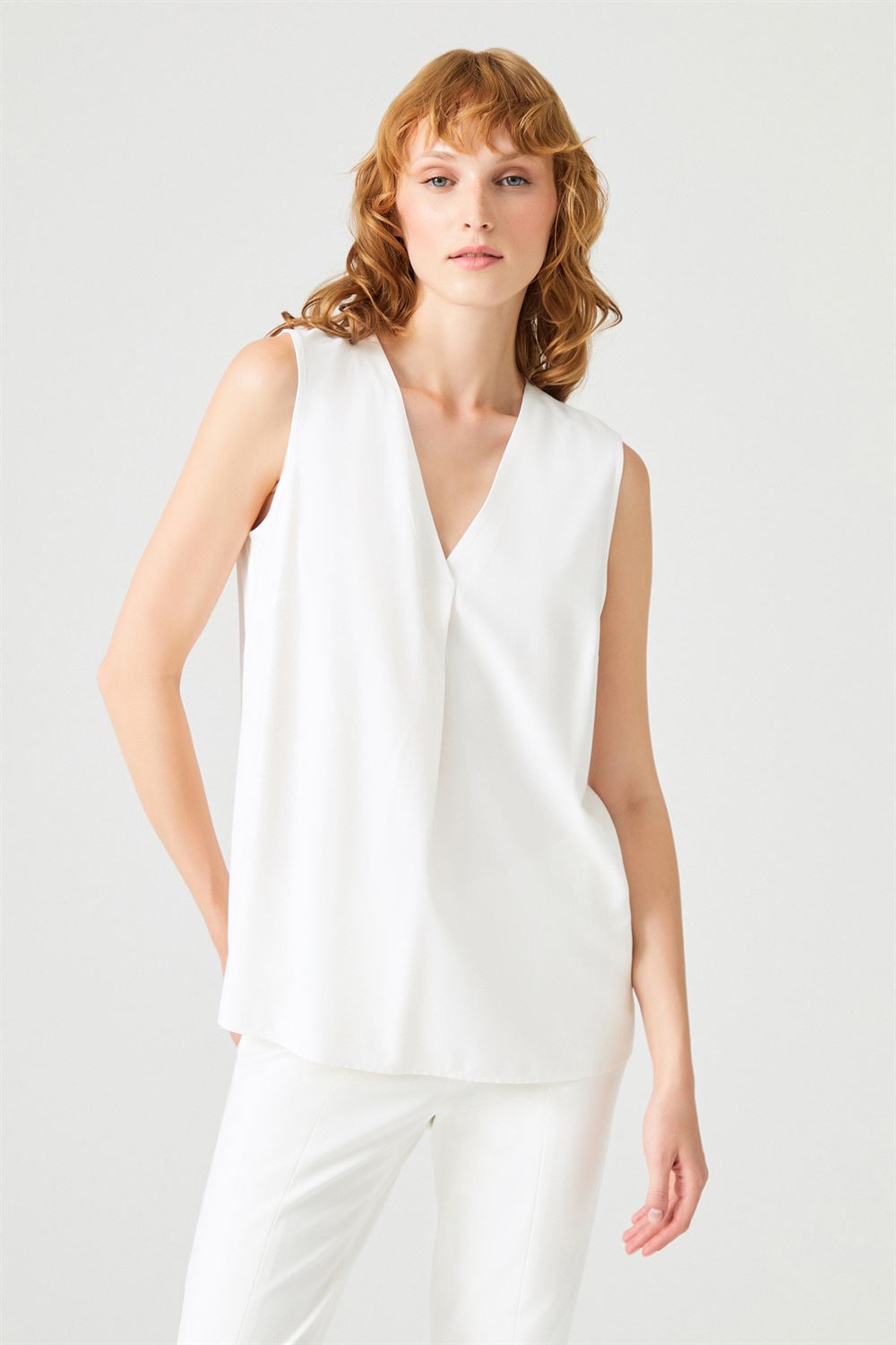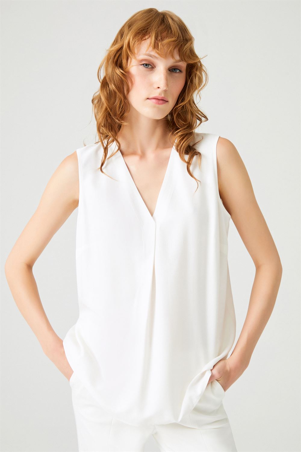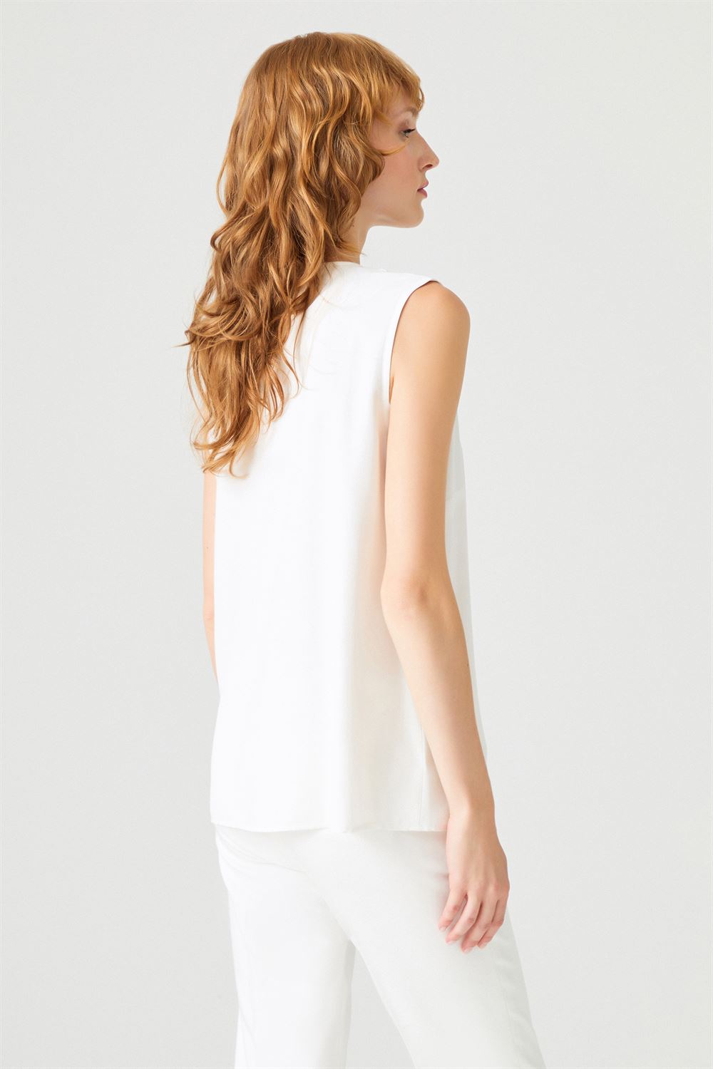 Pile Detaylı Kolsuz Bluz
