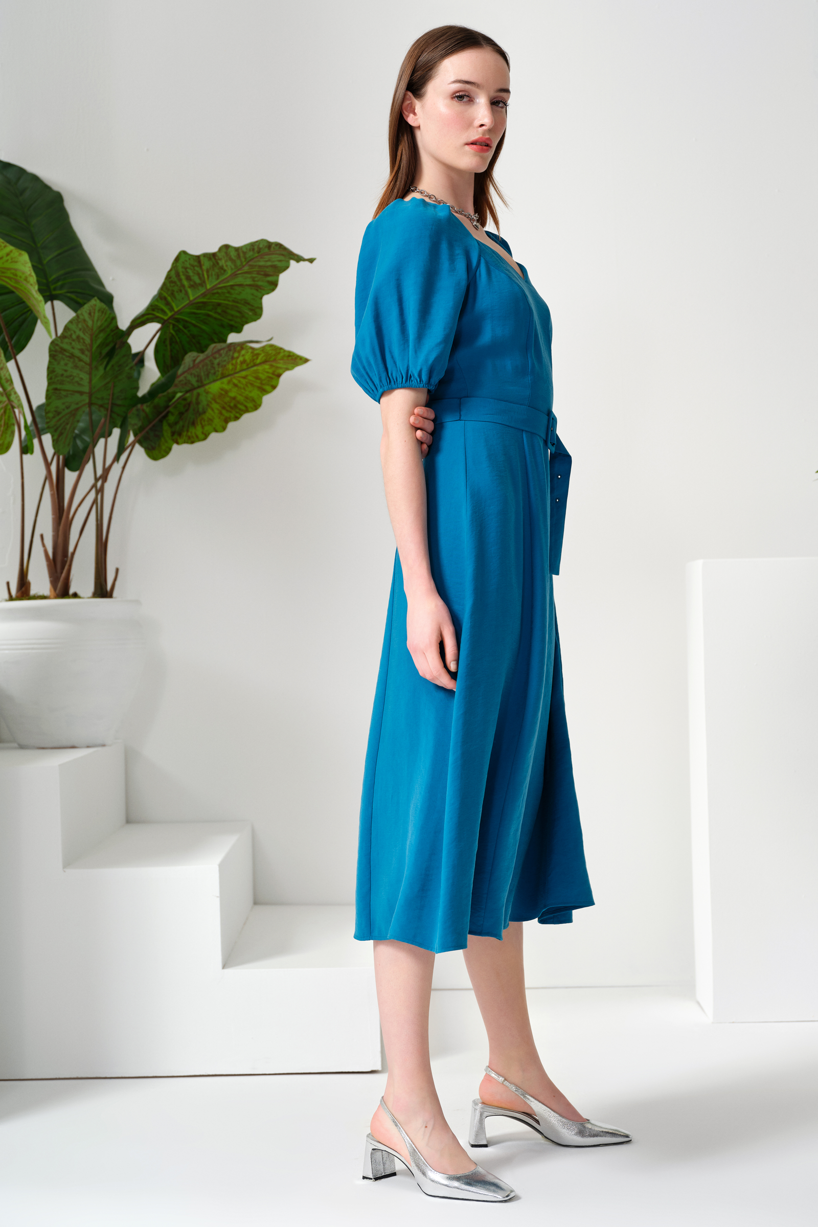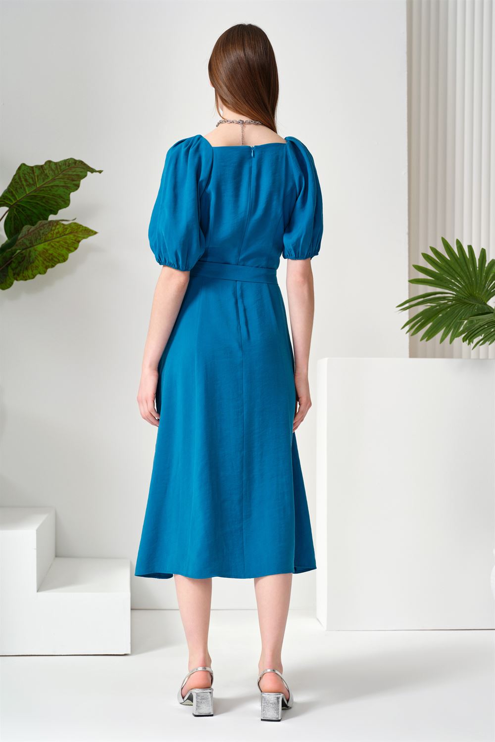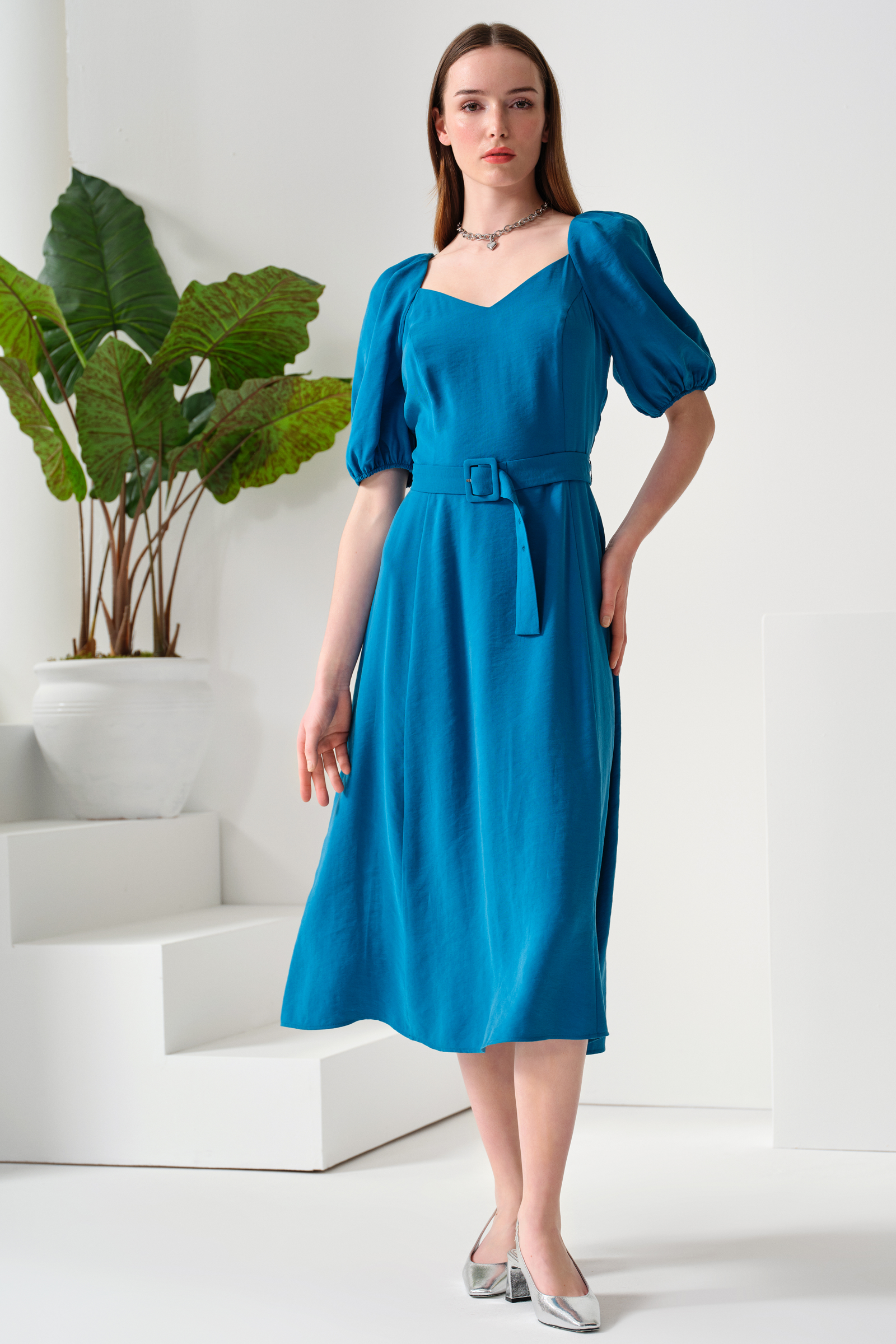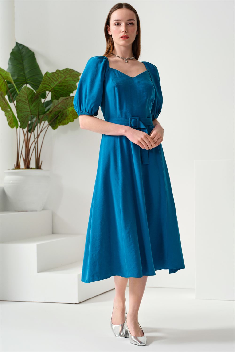 Kemerli Midi Boy Elbise