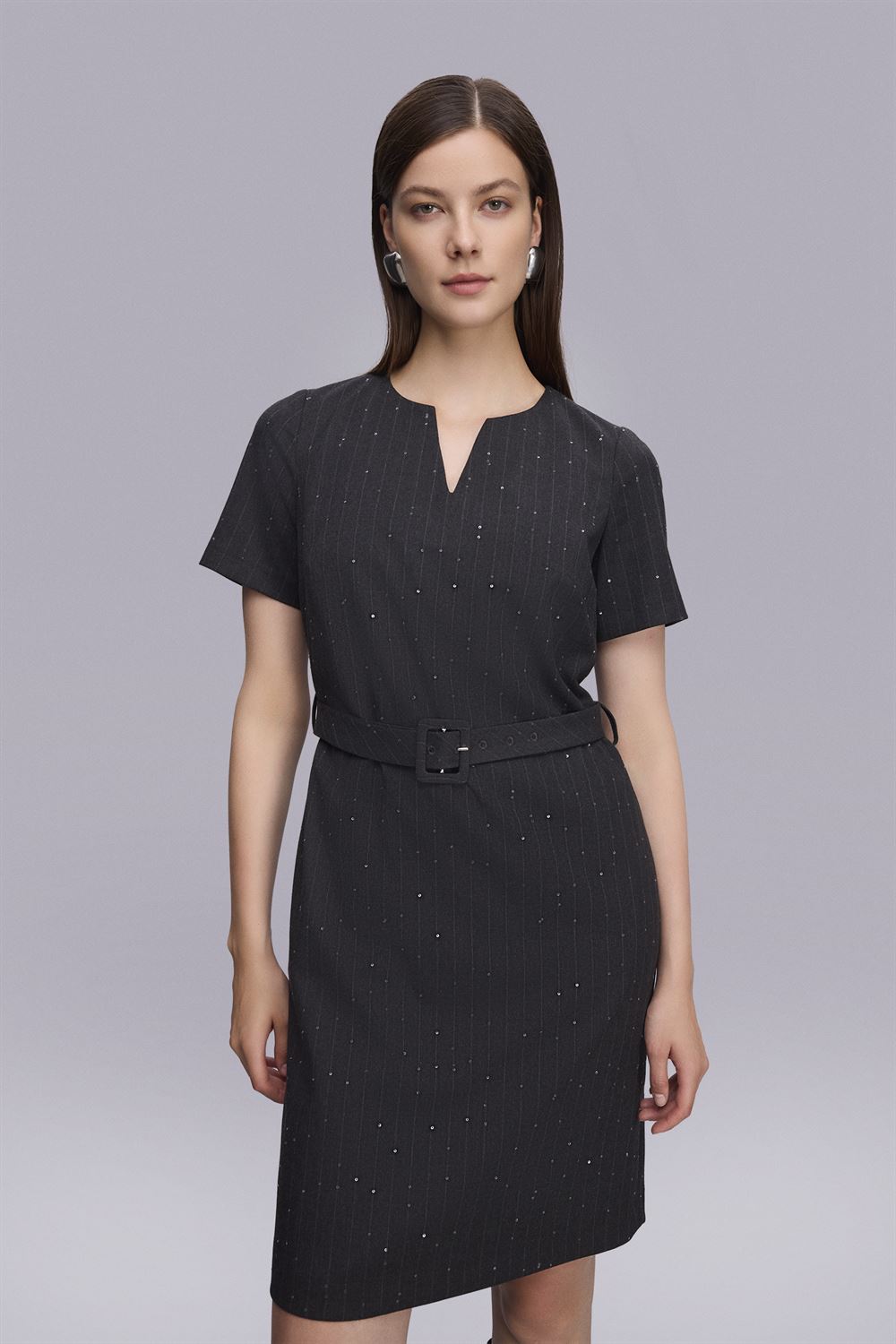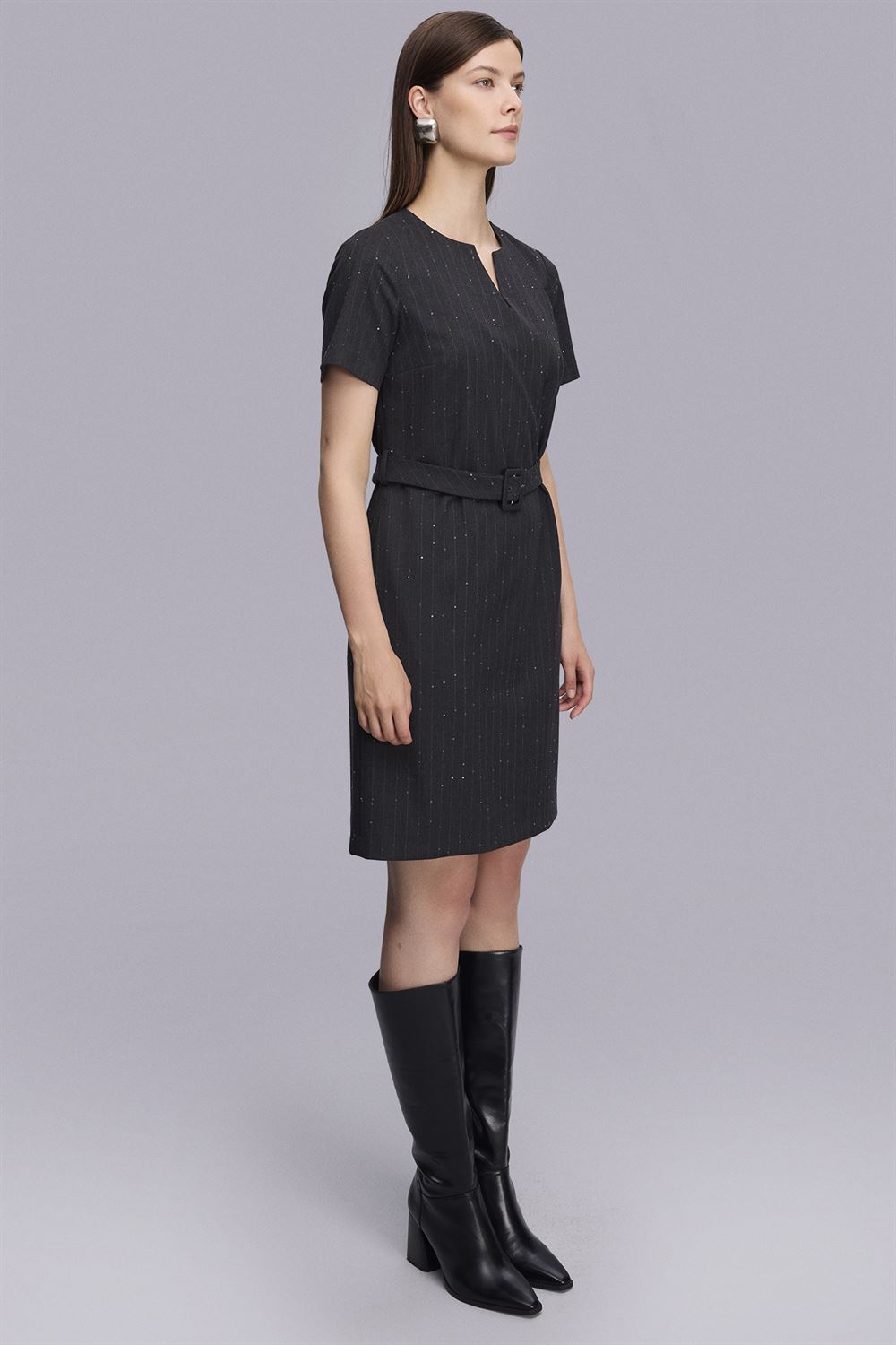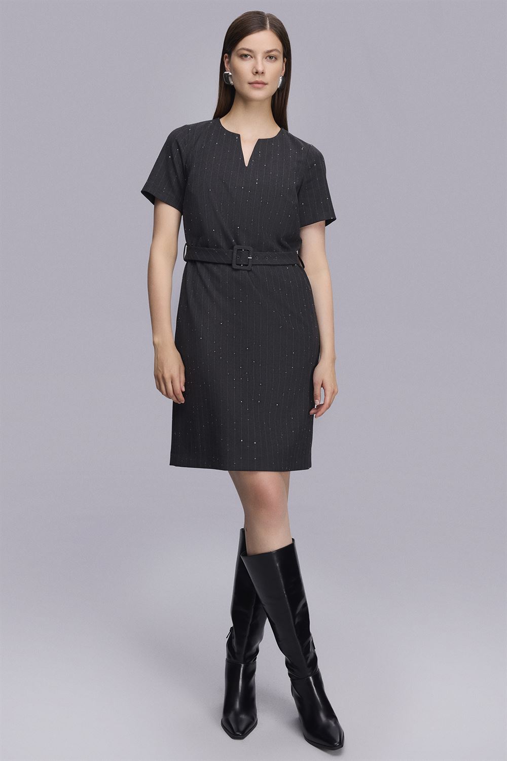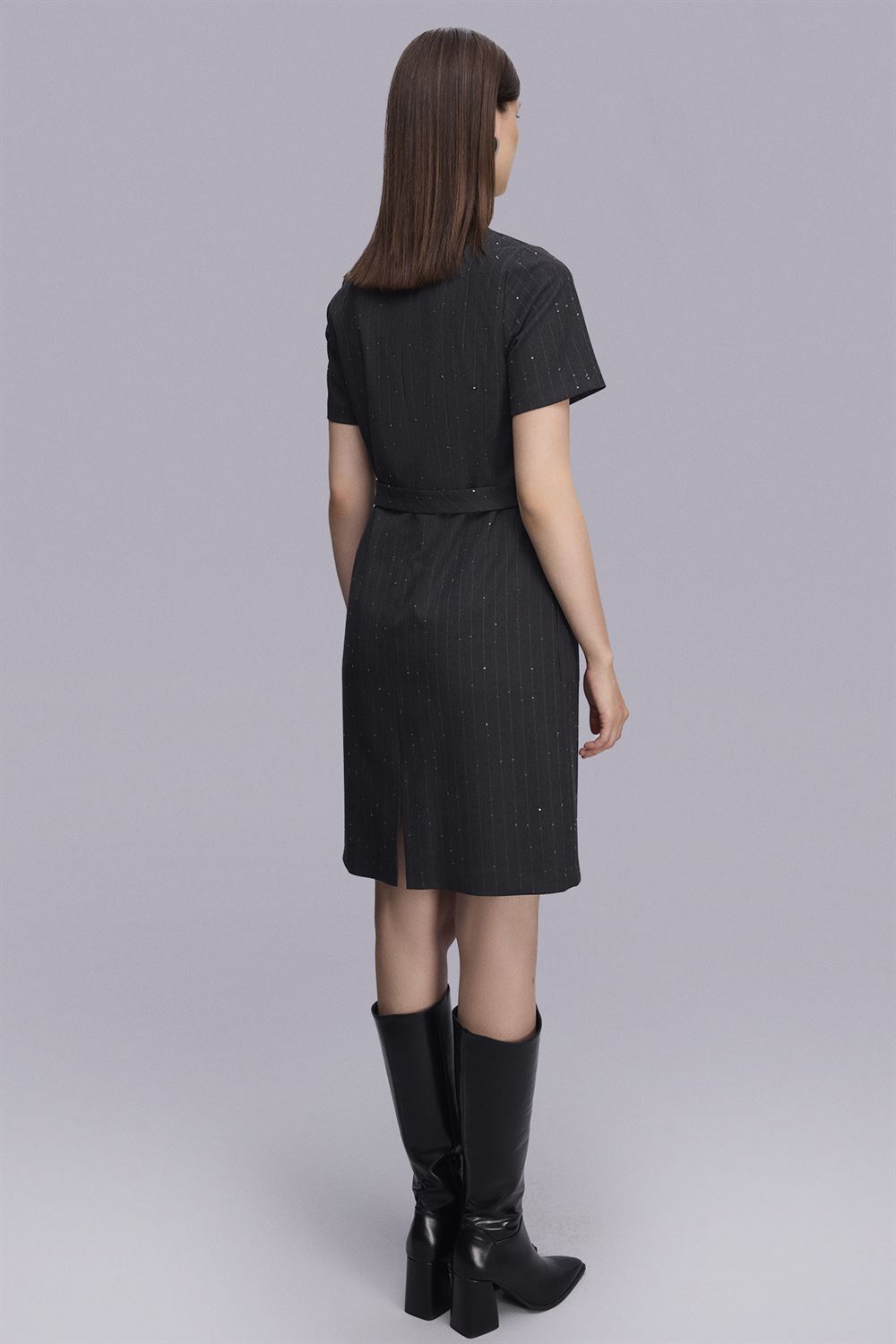 Kemerli Dizboy Çizgili Elbise