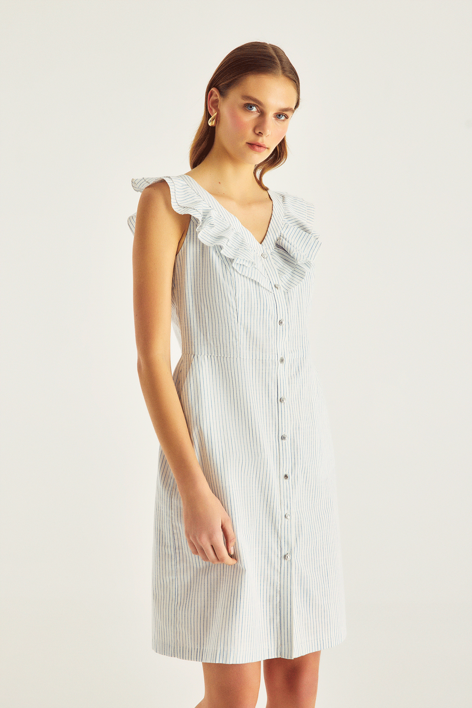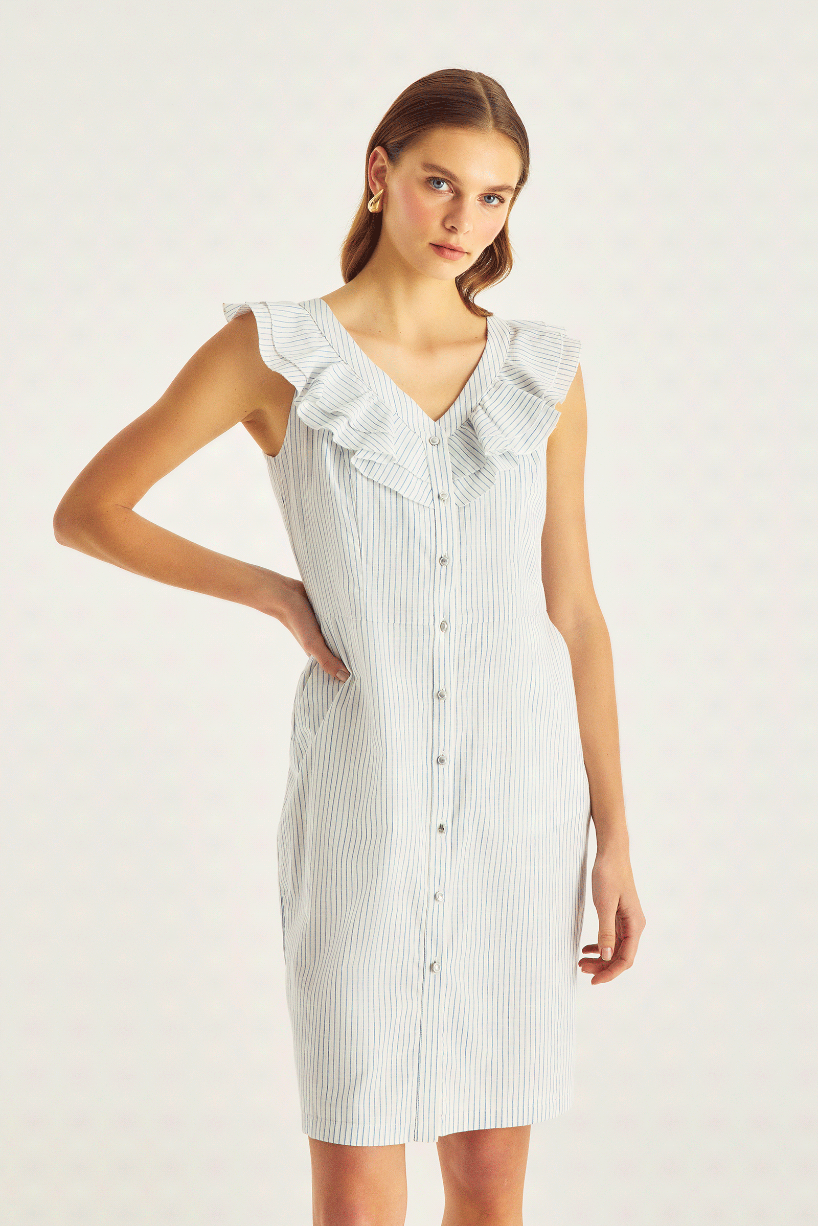 Fırfırlı Diz Boy Çzigili Elbise