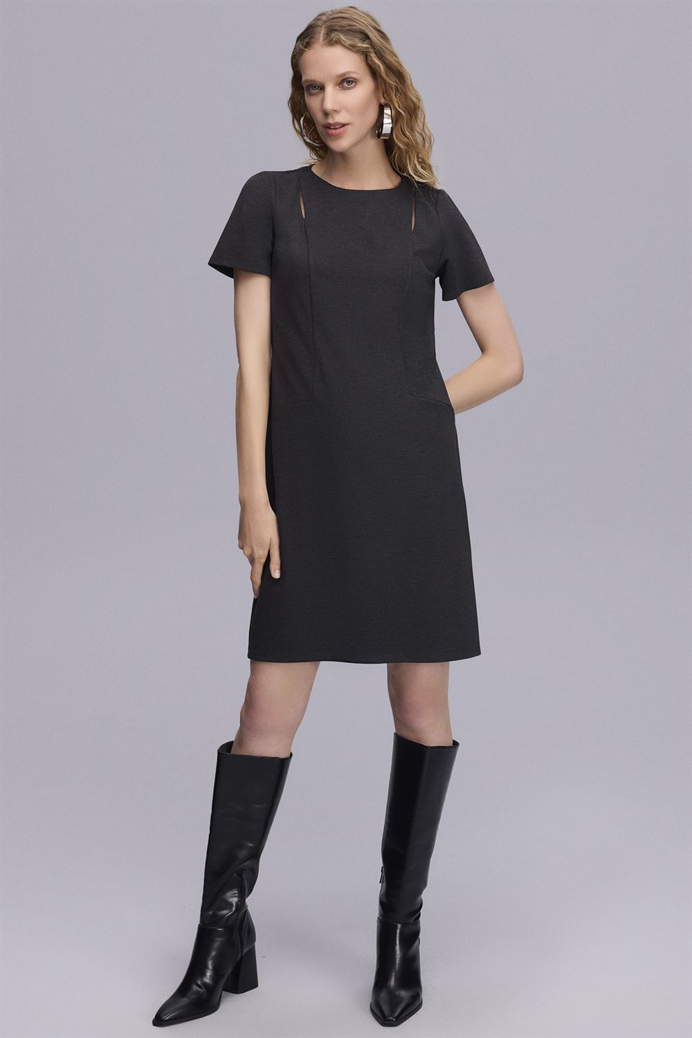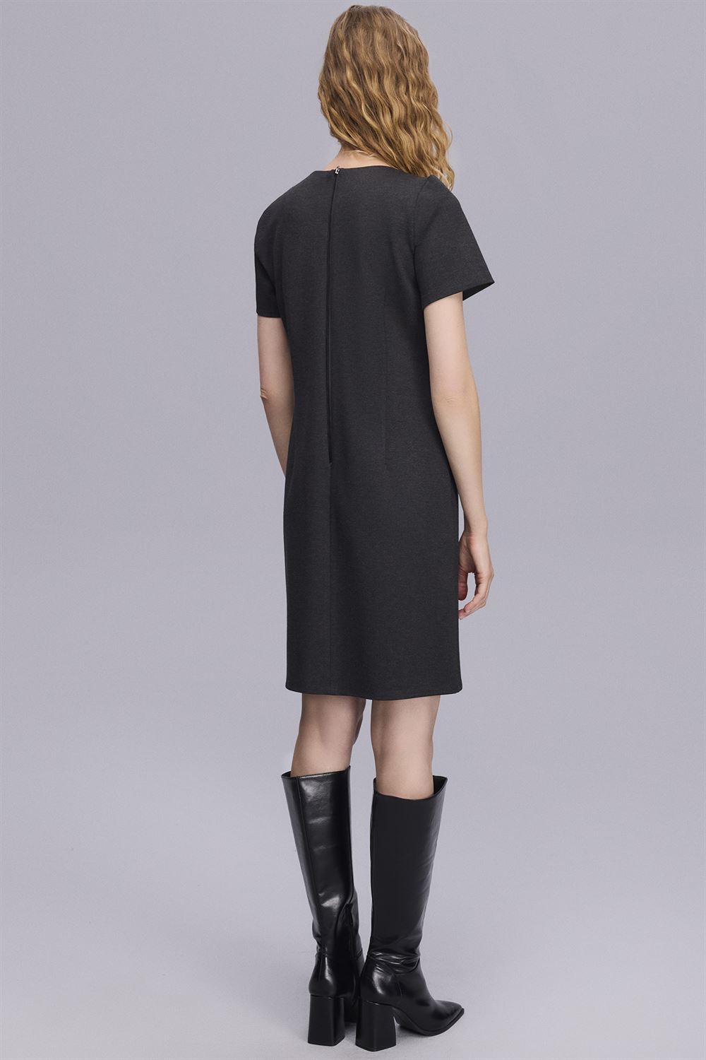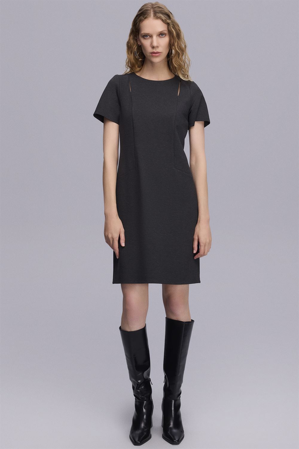 Büzgü Detaylı Şal Desen Uzun Elbise