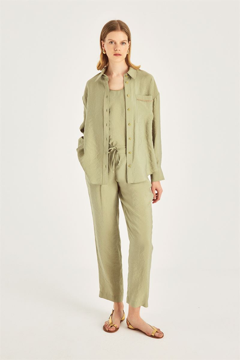 Nemliyken ütüleyiniz. Buharlı ütüleme tavsiye edilir. Tersten yıkayınız ve ütüleyiniz. Benzer renklerle yıkayınız. Asarak kurutunuz. |