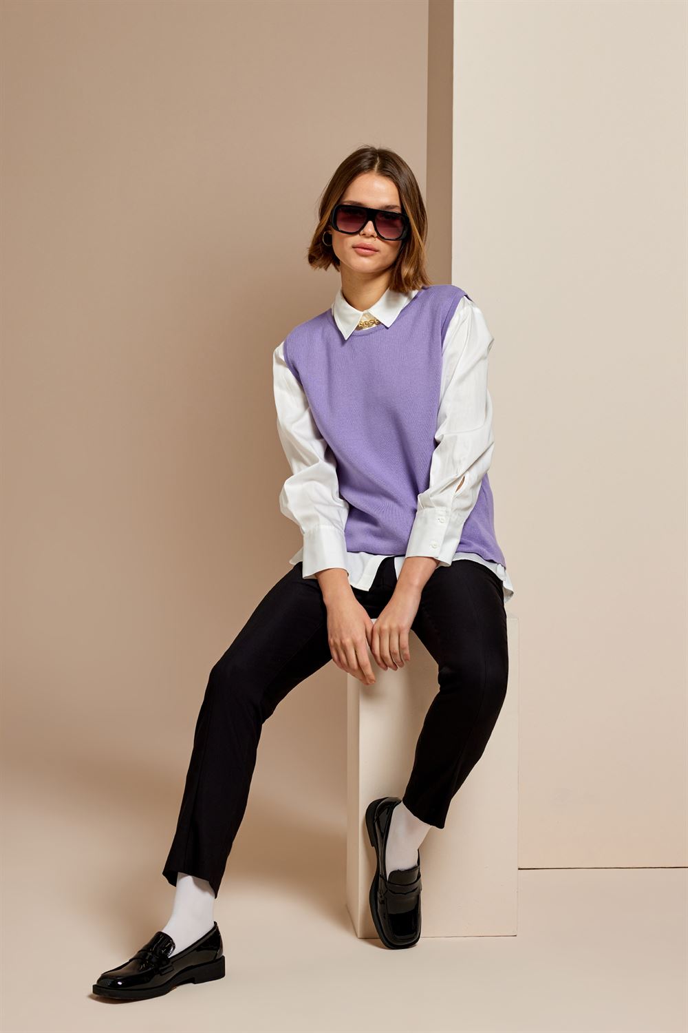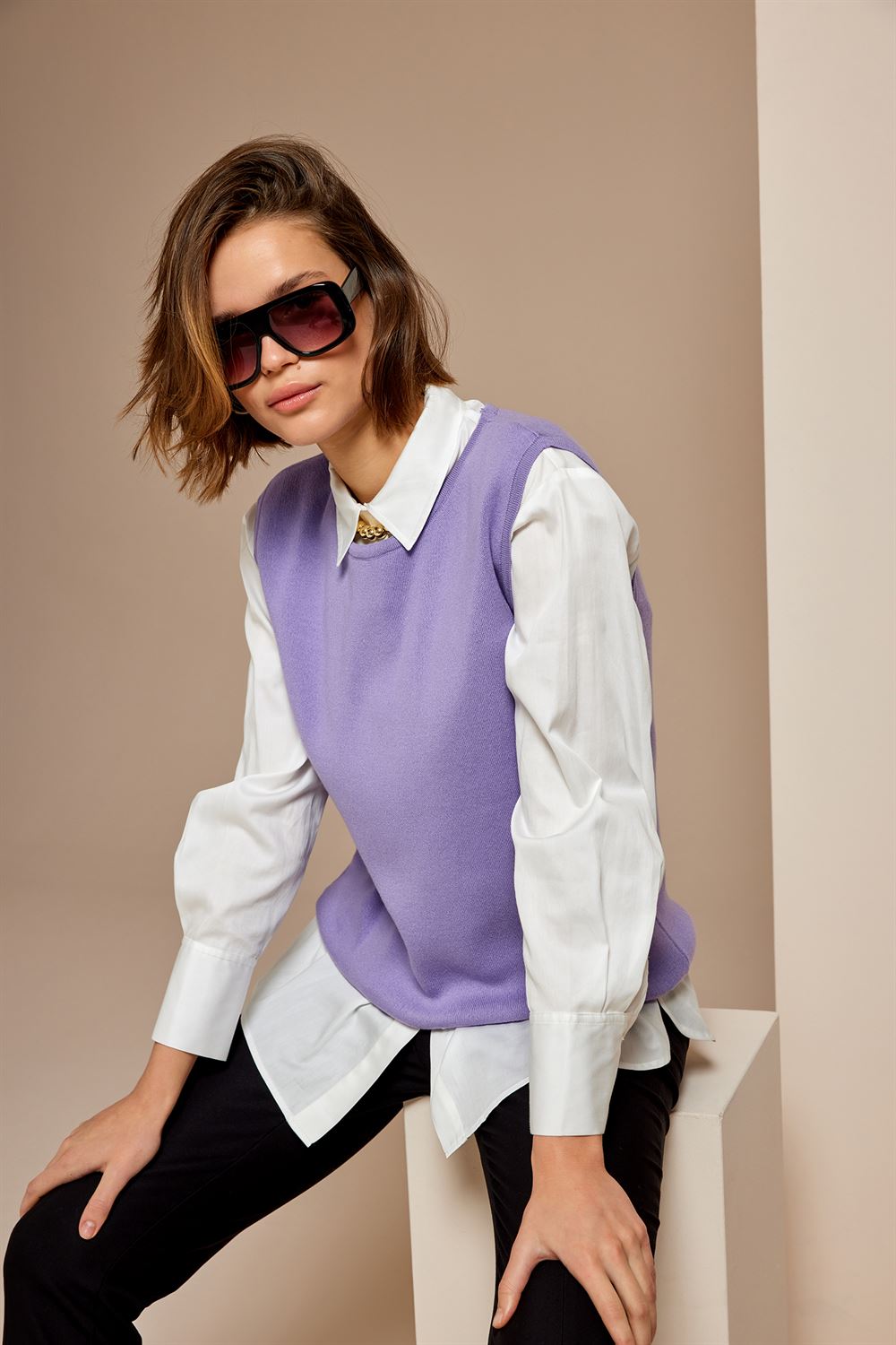 Dantel Kumaş Karışımlı Bordo Kadife Bluz