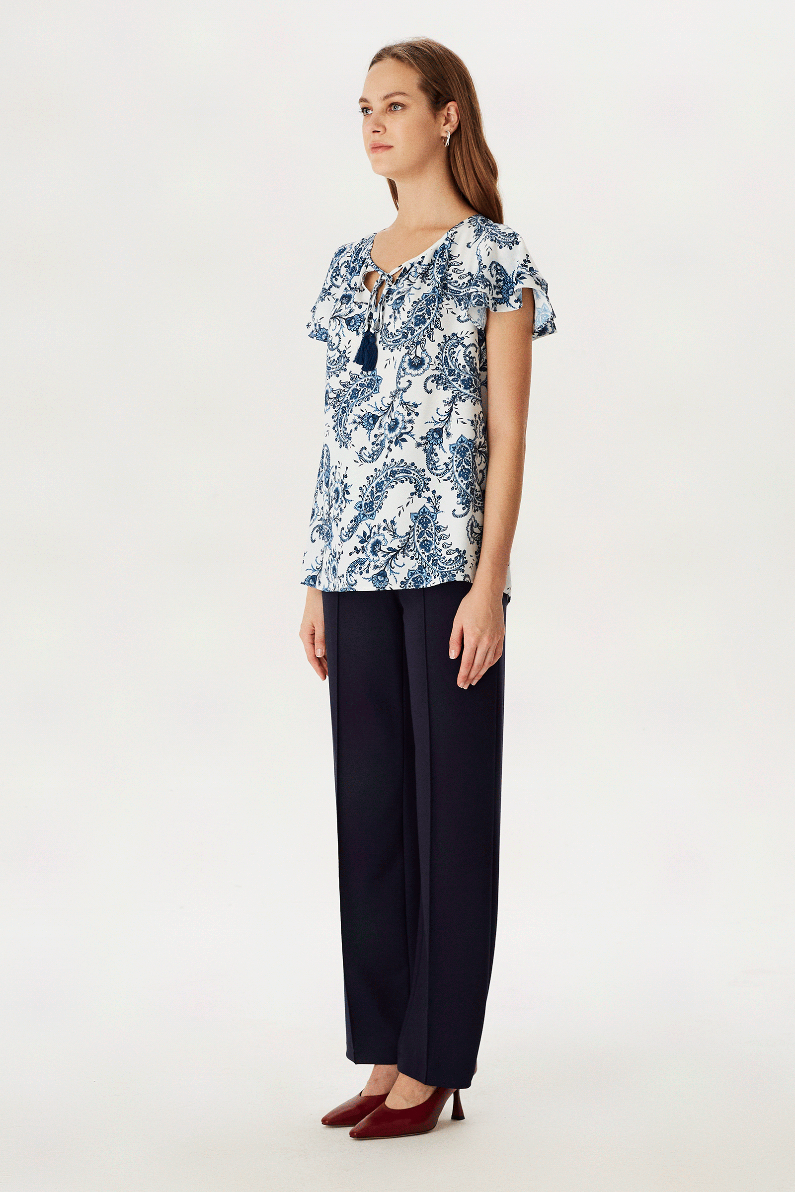 30 derecede benzer renklerle yıkayınız. Nemliyken ütüleyiniz. Buharlı ütüleme tavsiye edilir. Tersten yıkayınız ve ütüleyiniz. Asarak kurutunuz. |