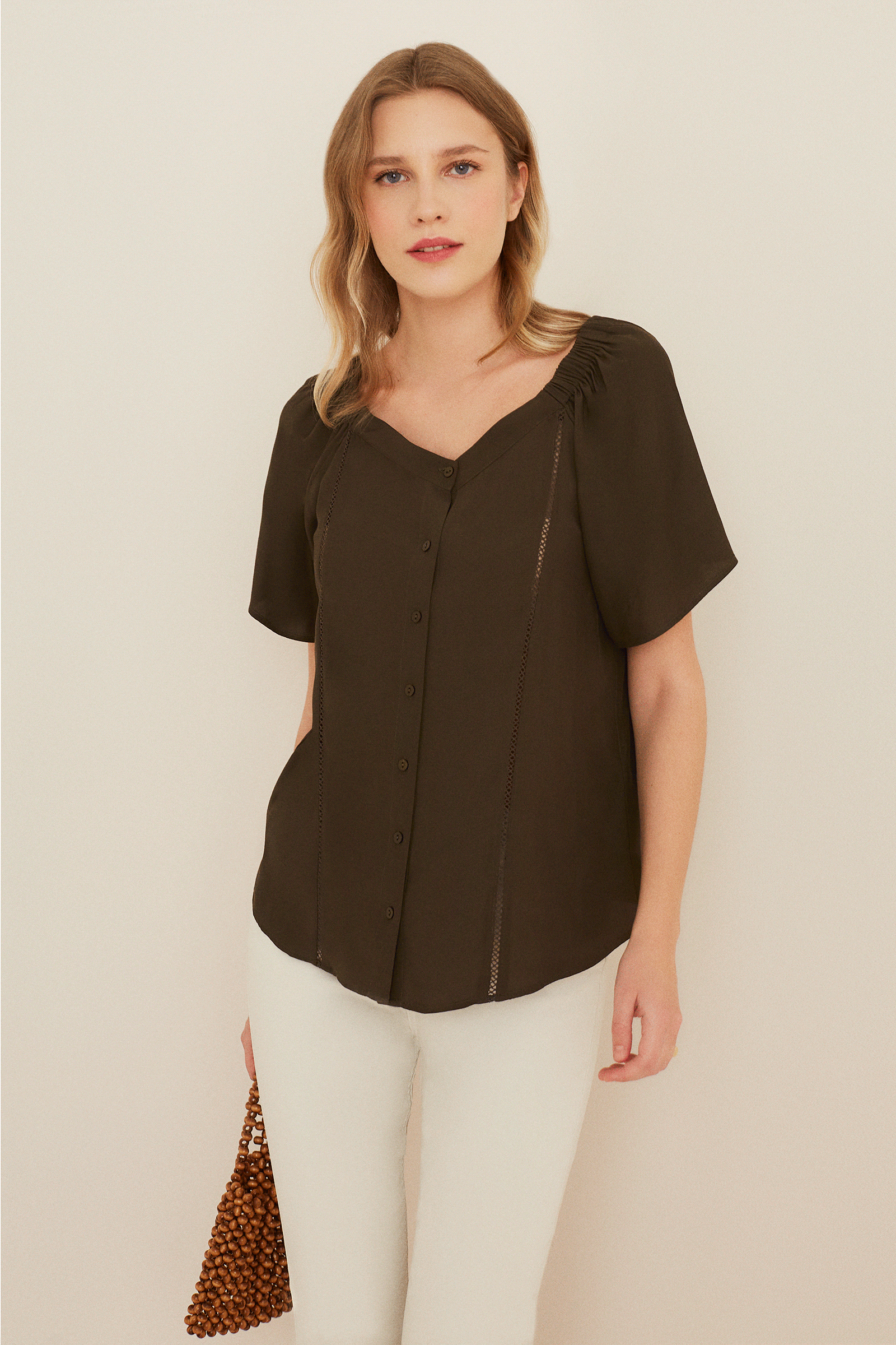 30 derecede benzer renklerle yıkayınız. Nemliyken ütüleyiniz. Buharlı ütüleme tavsiye edilir. Tersten yıkayınız ve ütüleyiniz. Asarak kurutunuz. |