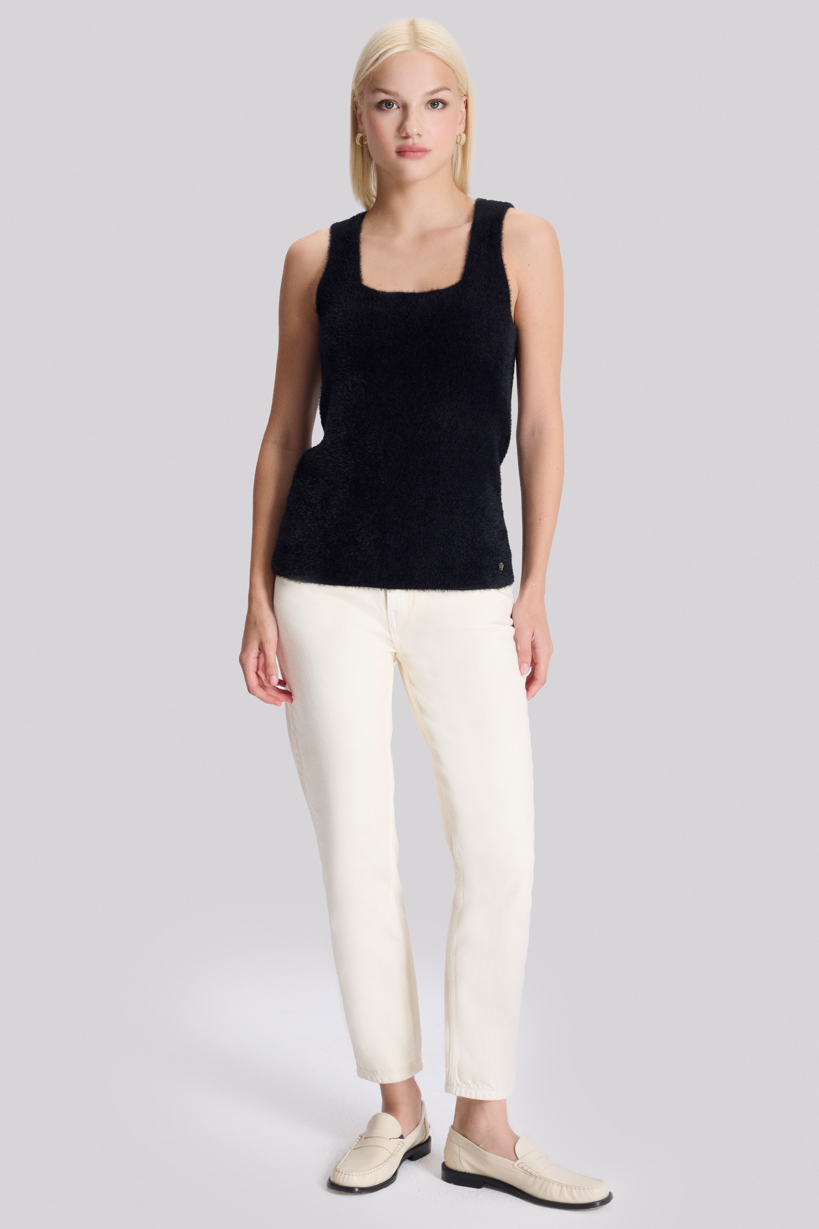 Dantel Kumaş Karışımlı Siyah Kadife Bluz