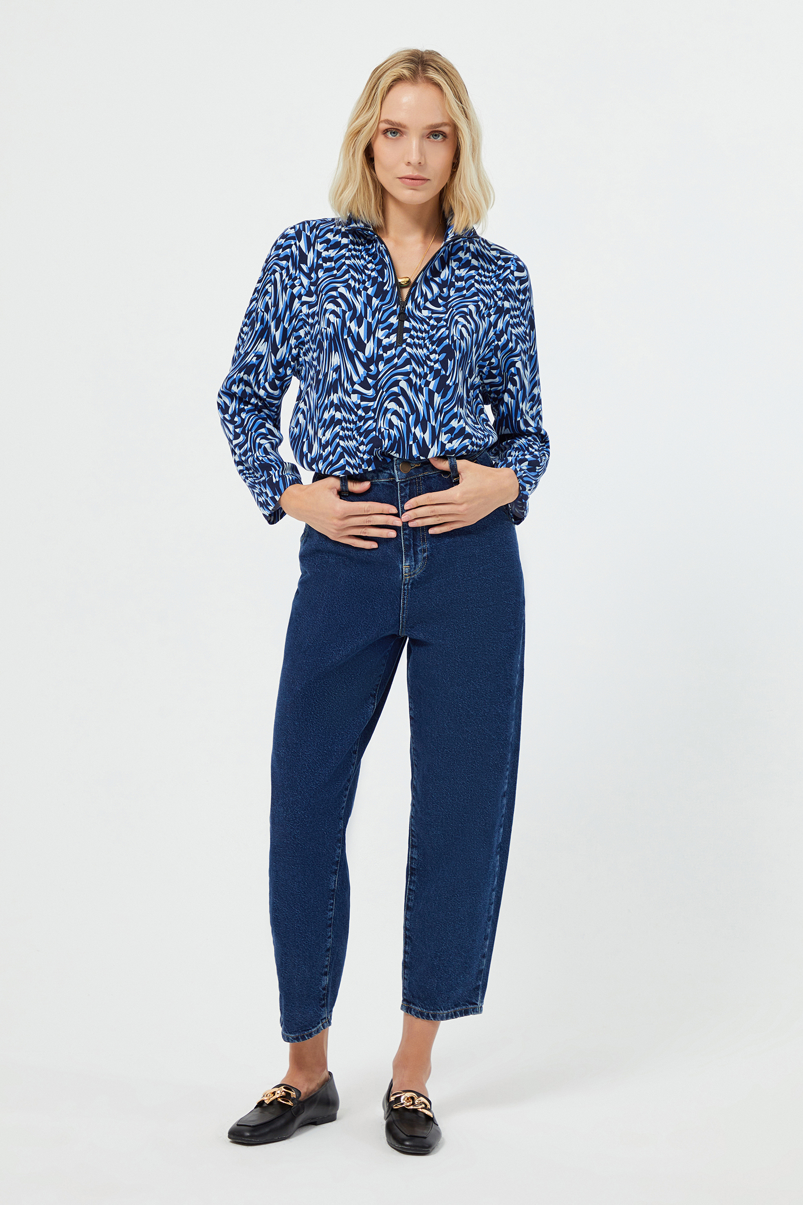 30 derecede benzer renklerle yıkayınız. Nemliyken ütüleyiniz. Buharlı ütüleme tavsiye edilir. Tersten yıkayınız ve ütüleyiniz. Asarak kurutunuz. |