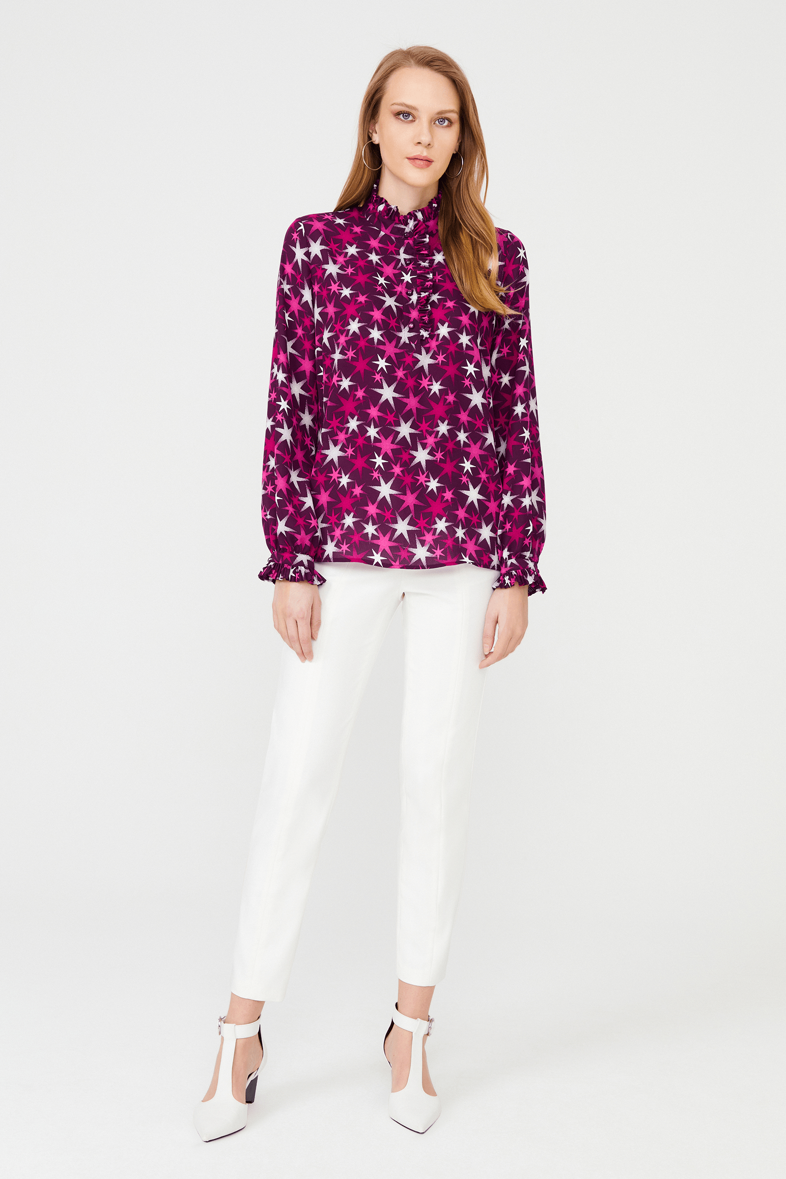 Fırfır Detaylı İnci Düğmeli Bluz