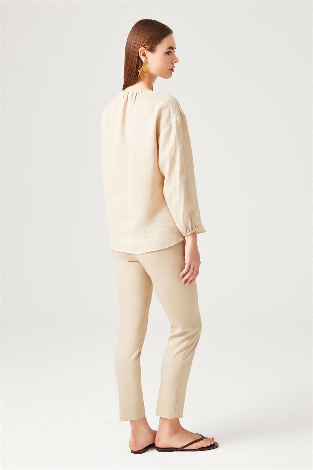 30 derecede benzer renklerle yıkayınız. Nemliyken ütüleyiniz. Buharlı ütüleme tavsiye edilir. Tersten yıkayınız ve ütüleyiniz. Asarak kurutunuz. |