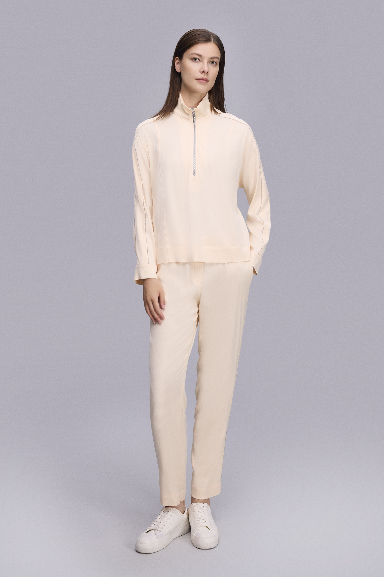 Nemliyken ütüleyiniz. Buharlı ütüleme tavsiye edilir. Tersten yıkayınız ve ütüleyiniz. Benzer renklerle yıkayınız. Asarak kurutunuz. |
