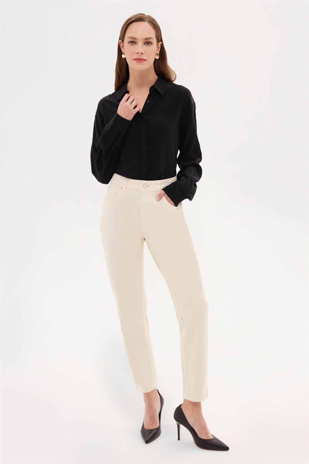 Nemliyken ütüleyiniz. Buharlı ütüleme tavsiye edilir. Tersten yıkayınız ve ütüleyiniz. Benzer renklerle yıkayınız. Asarak kurutunuz. |