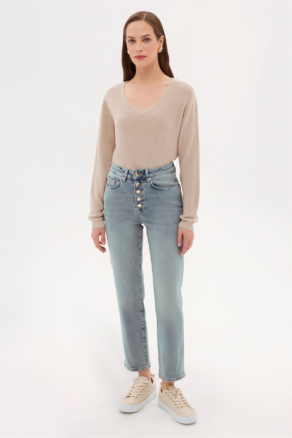 Nemliyken ütüleyiniz. Buharlı ütüleme tavsiye edilir. Tersten yıkayınız ve ütüleyiniz. Benzer renklerle yıkayınız. Asarak kurutunuz. |