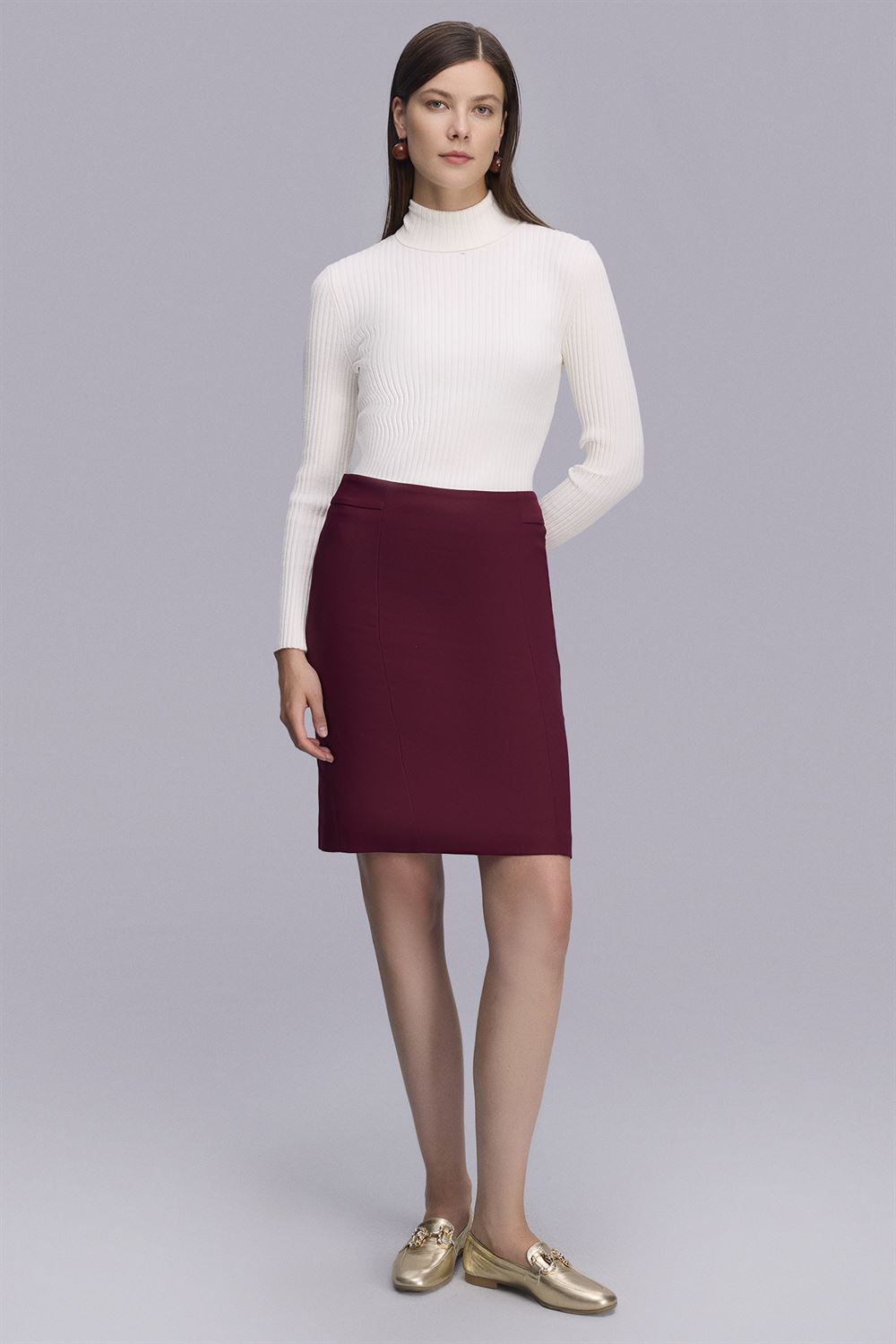 Klasik Kuplu Bordo Etek