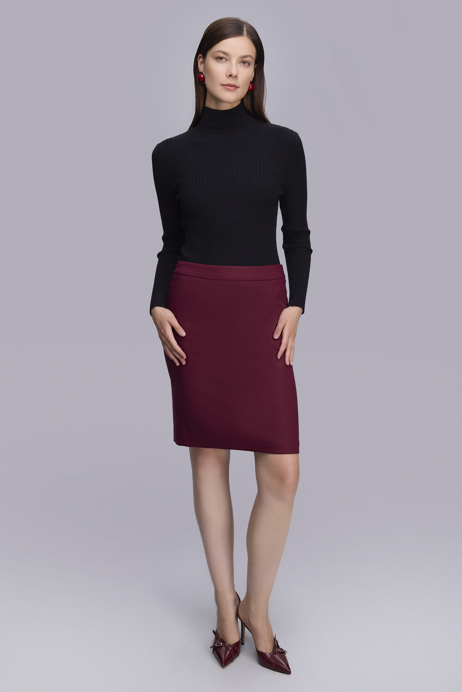 Klasik Diz Boy Bordo Etek