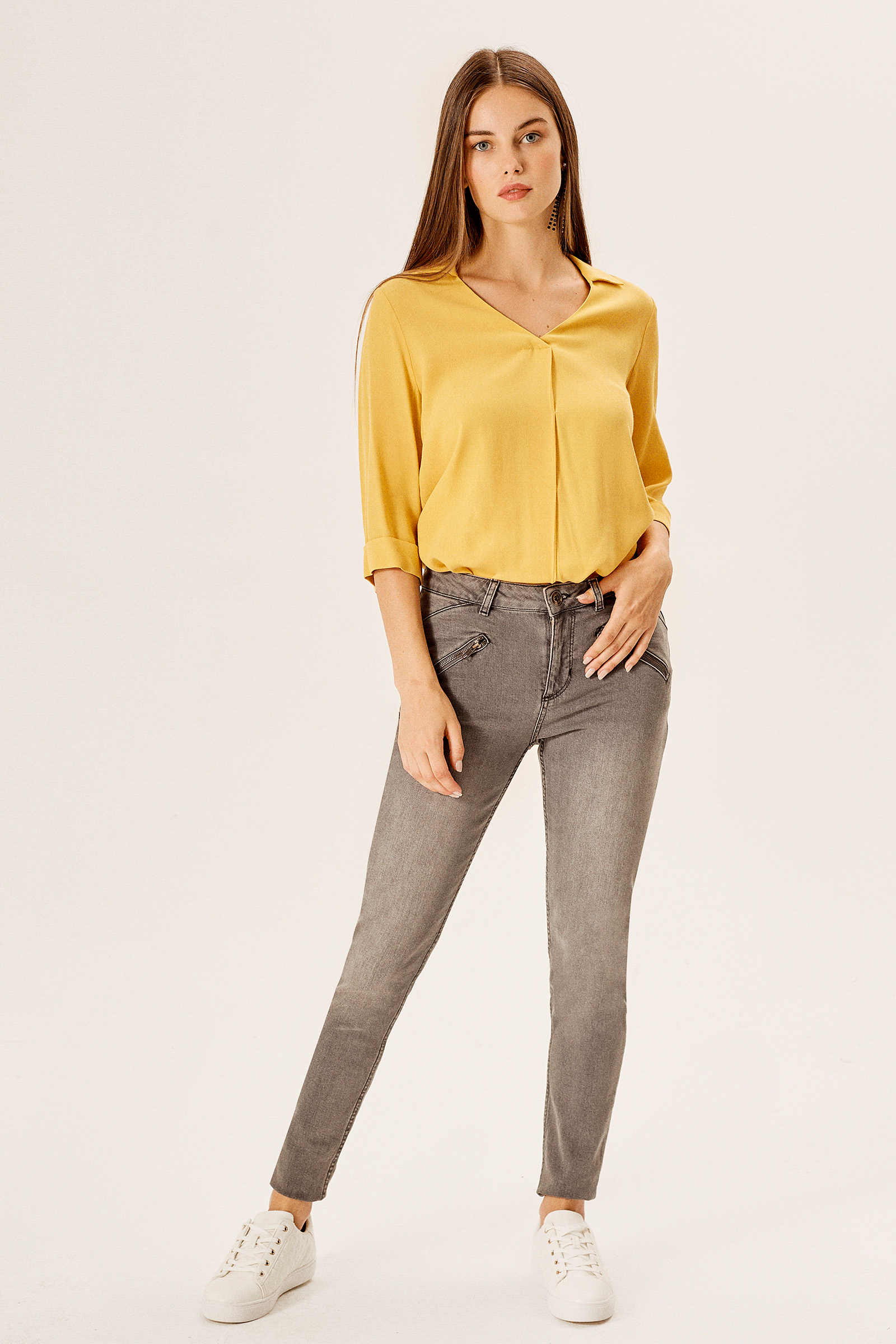 Fermuar Detaylı Dar Kesim Denim Pantolon