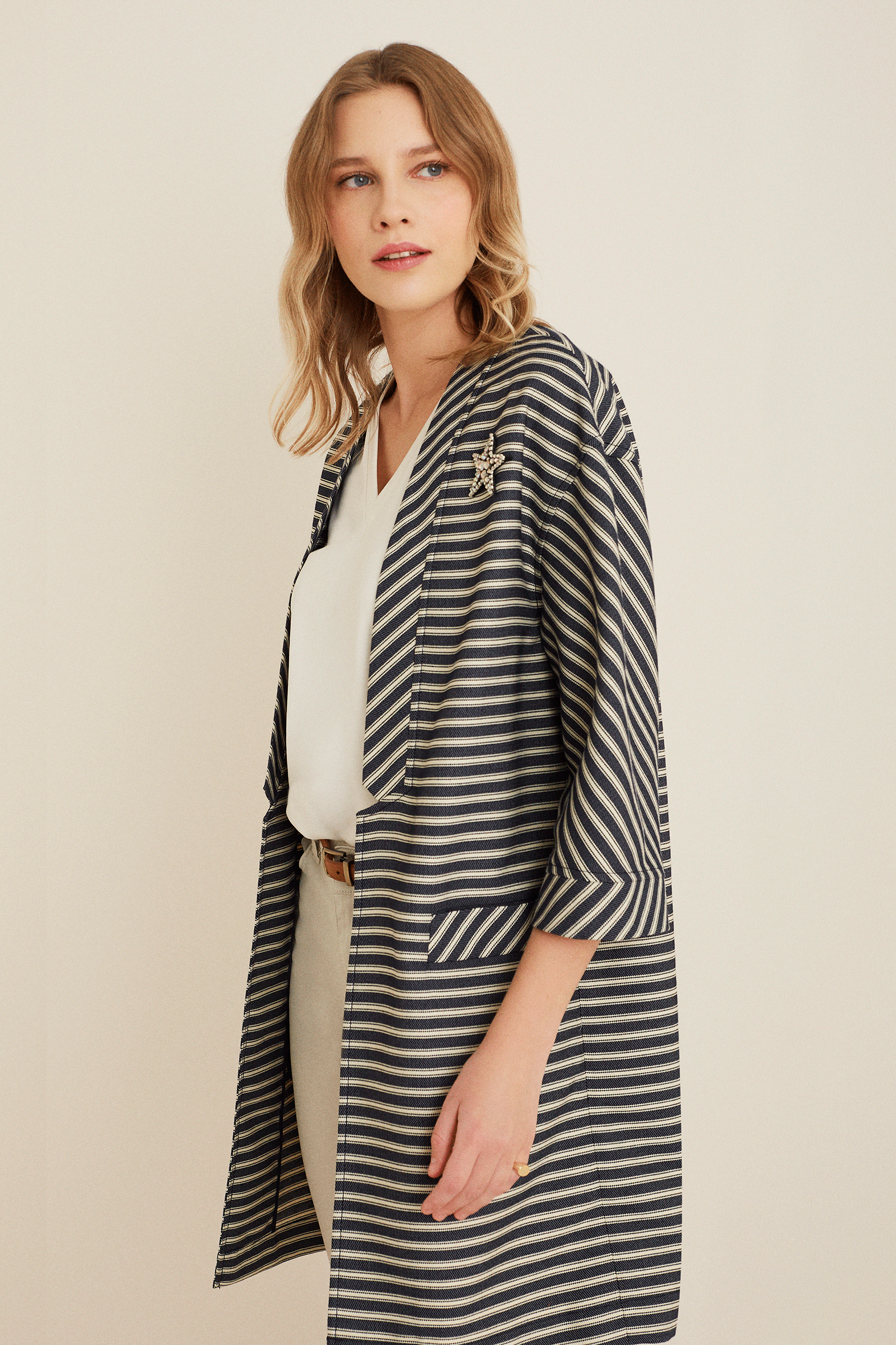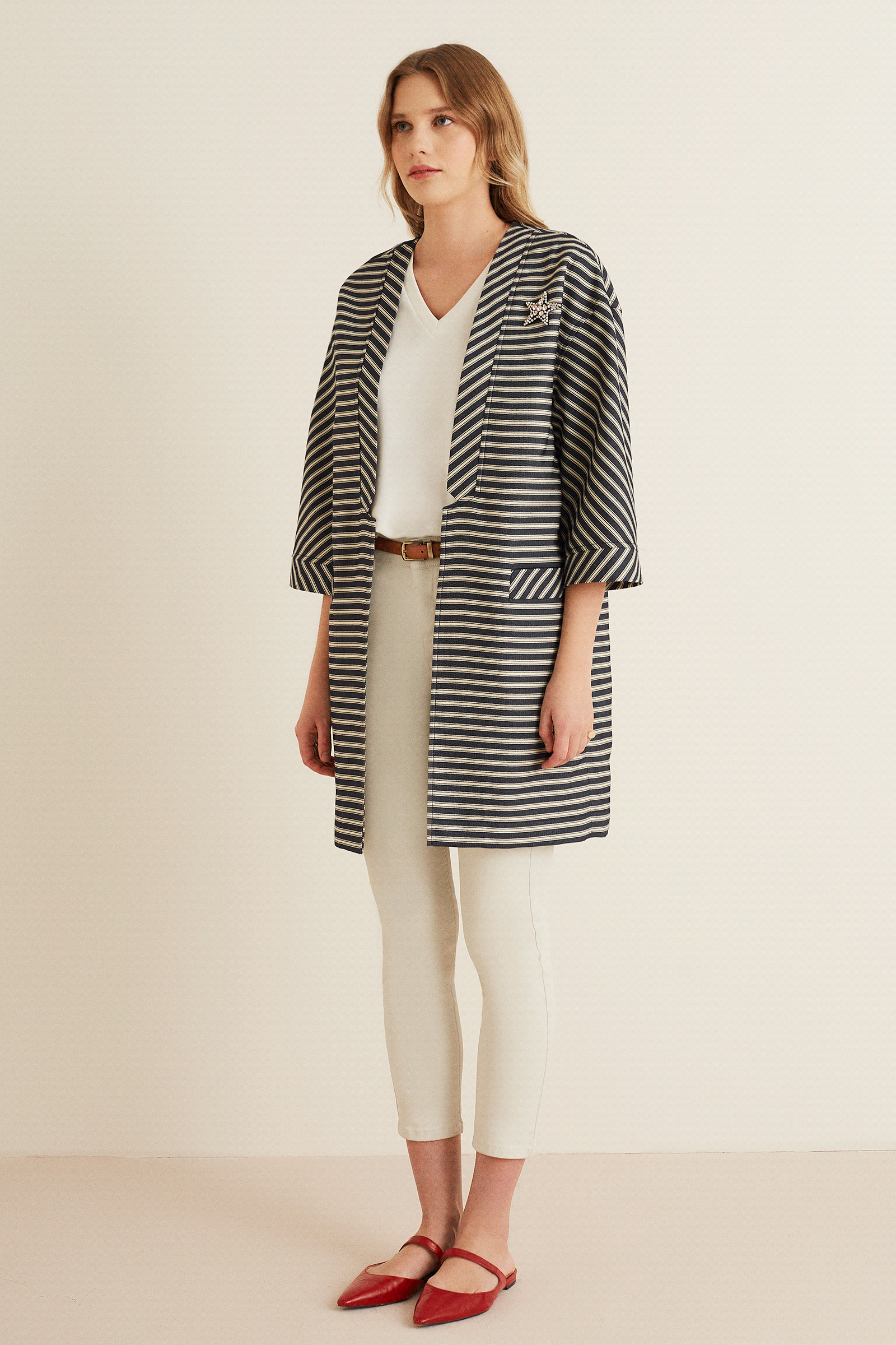 Truvakar Kol Çizgili Uzun Ceket