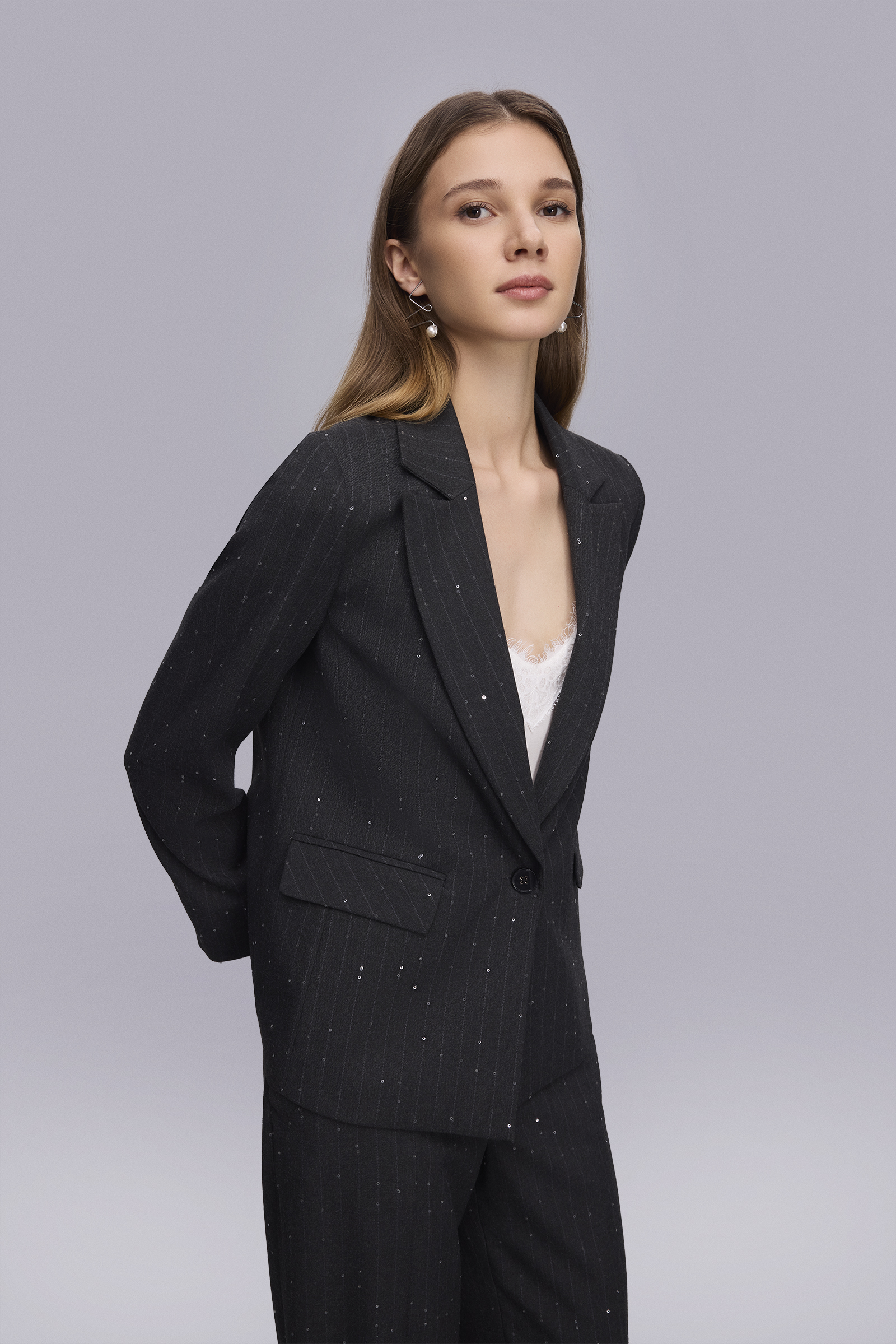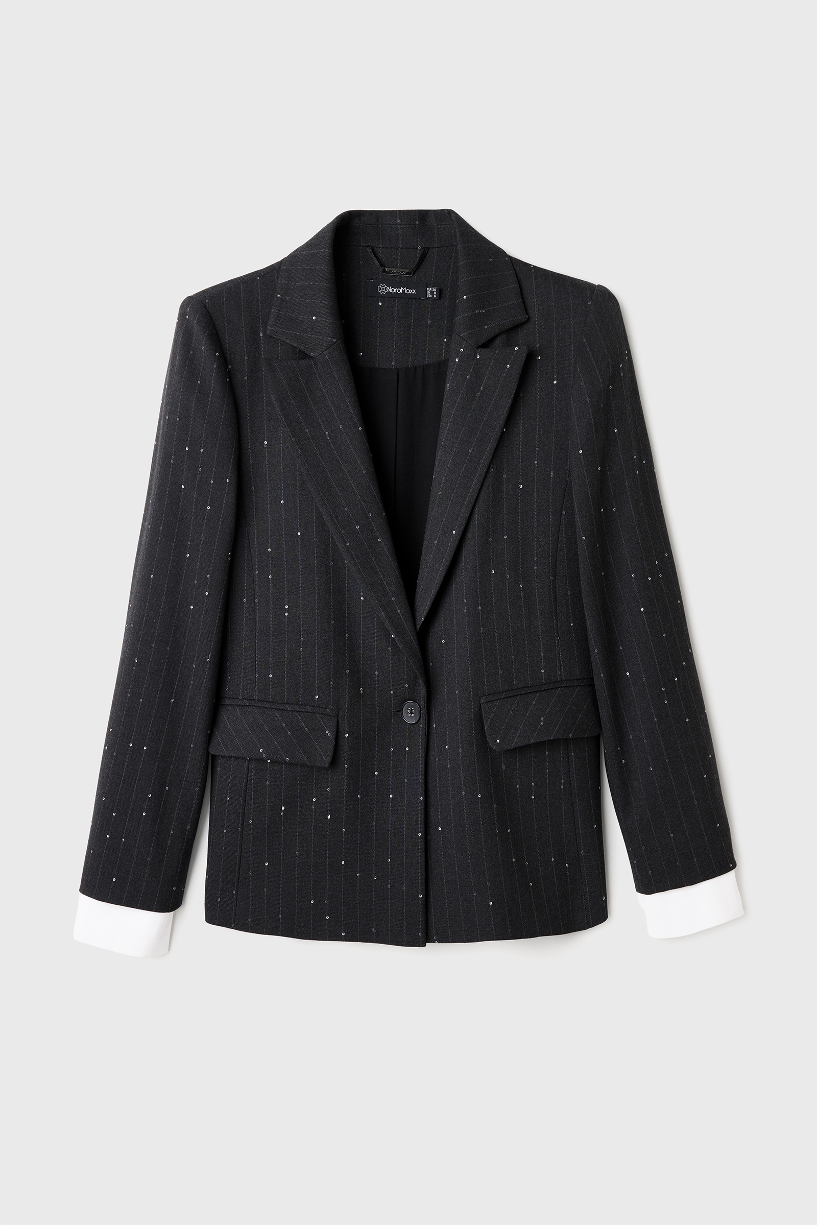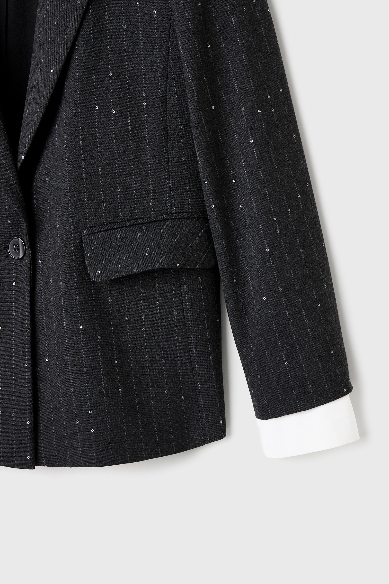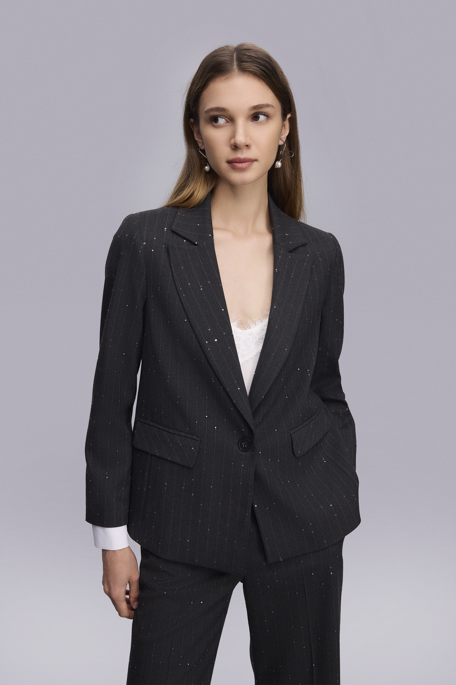 Kolucu Detaylı Klasik Çizgili Parıltılı Ceket