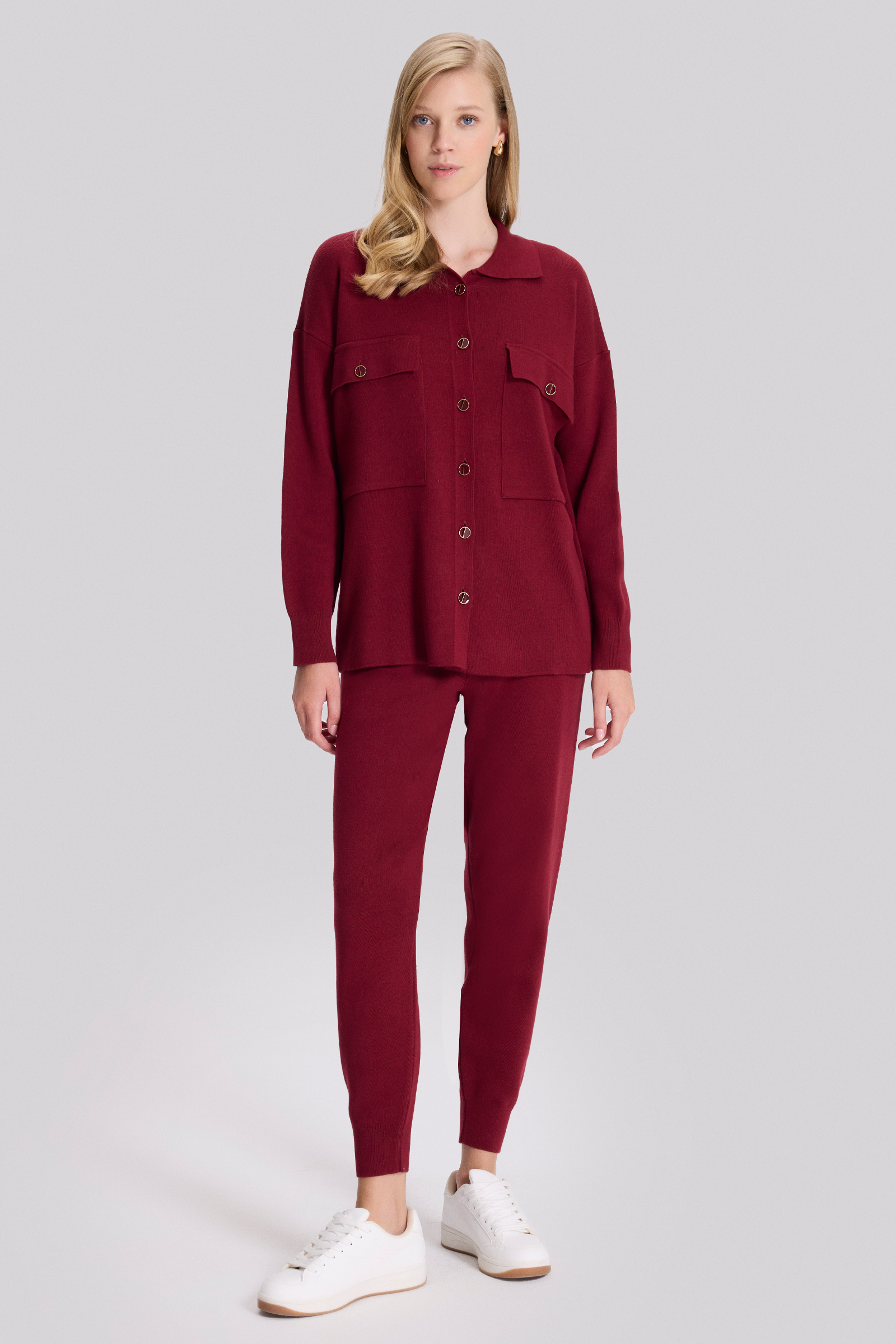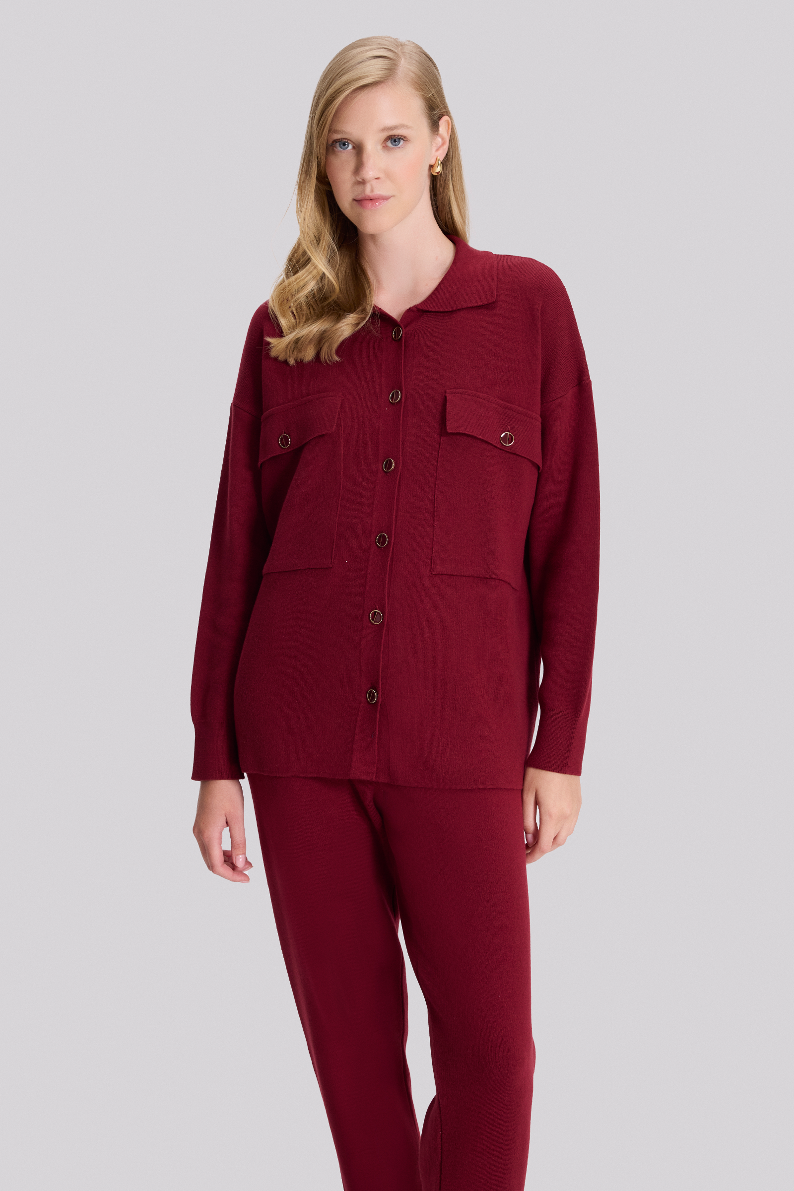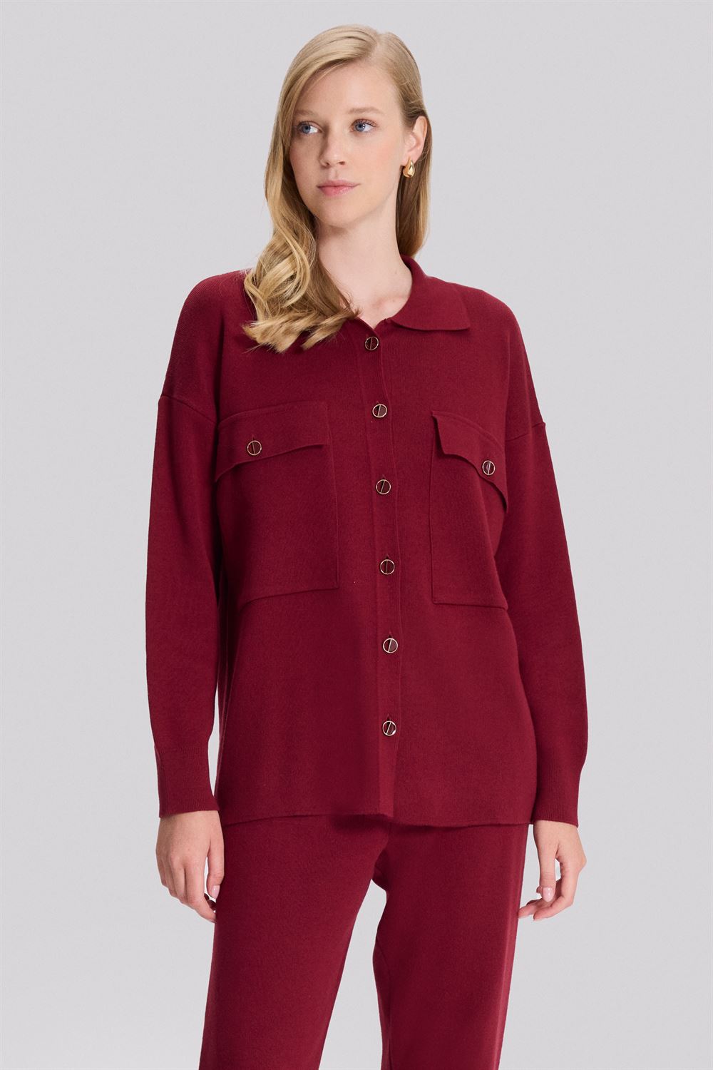 Gömlek Yakalı Düğmeli Triko Ceket