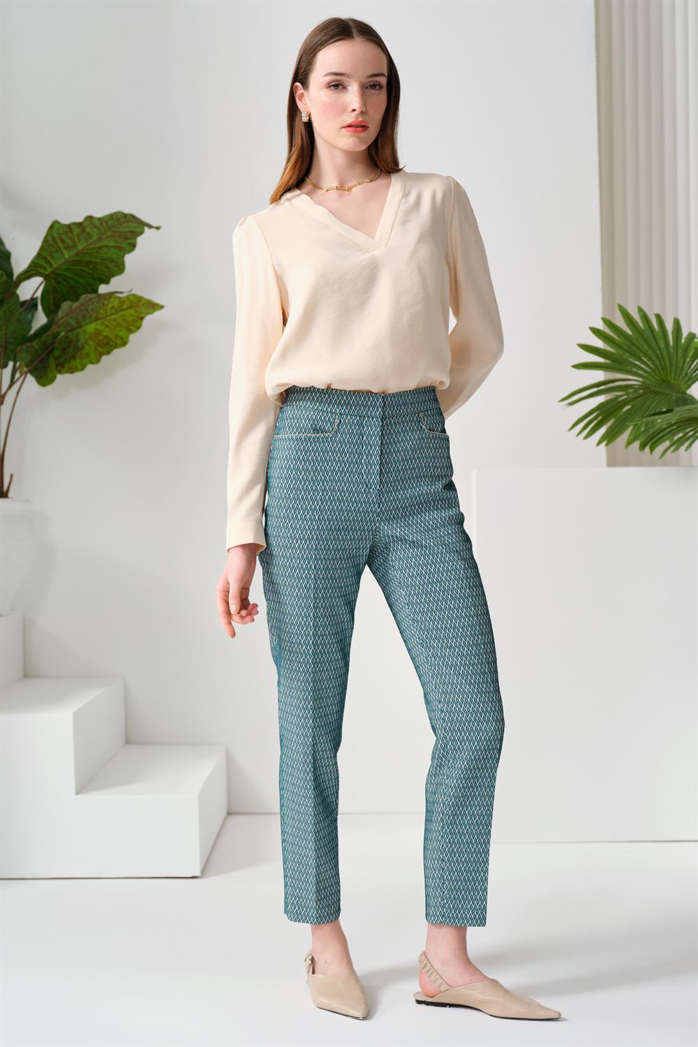 Pileli Bej Bol Paça Pantolon