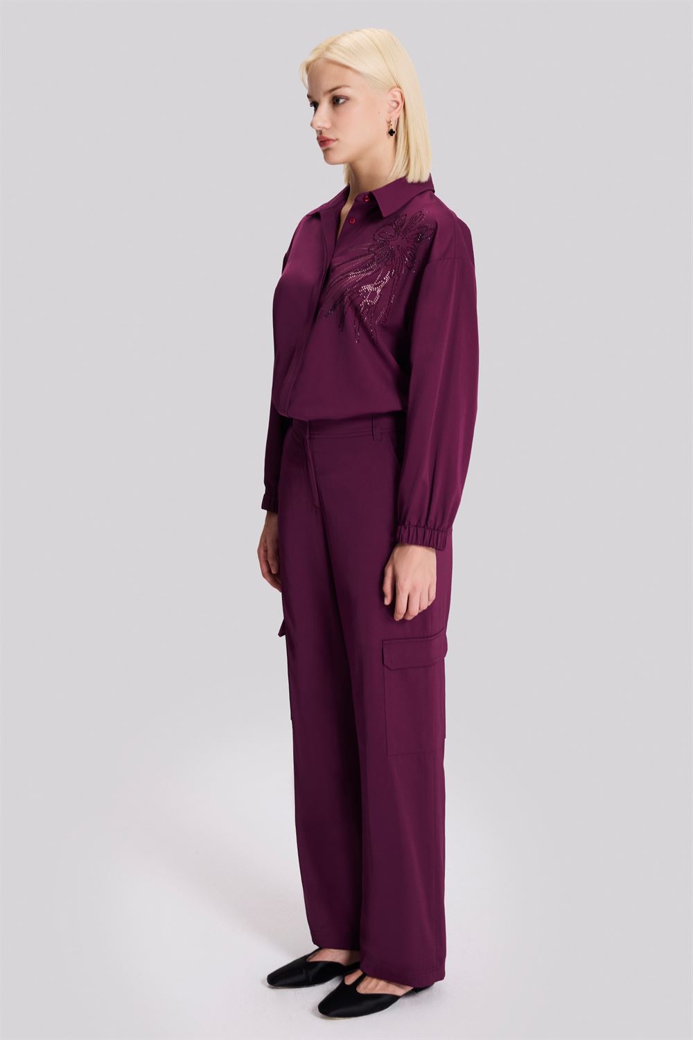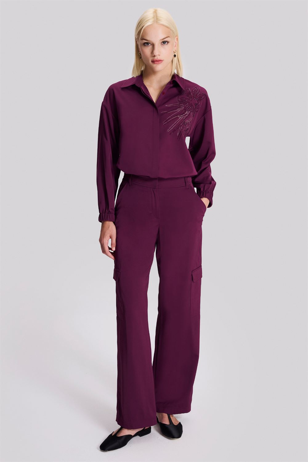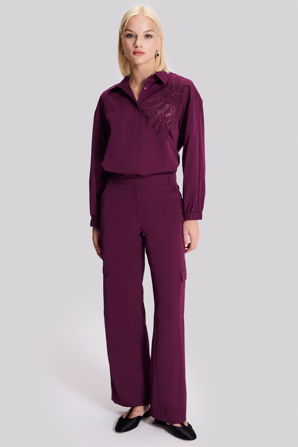 Pileli Bordo Bol Paça Pantolon