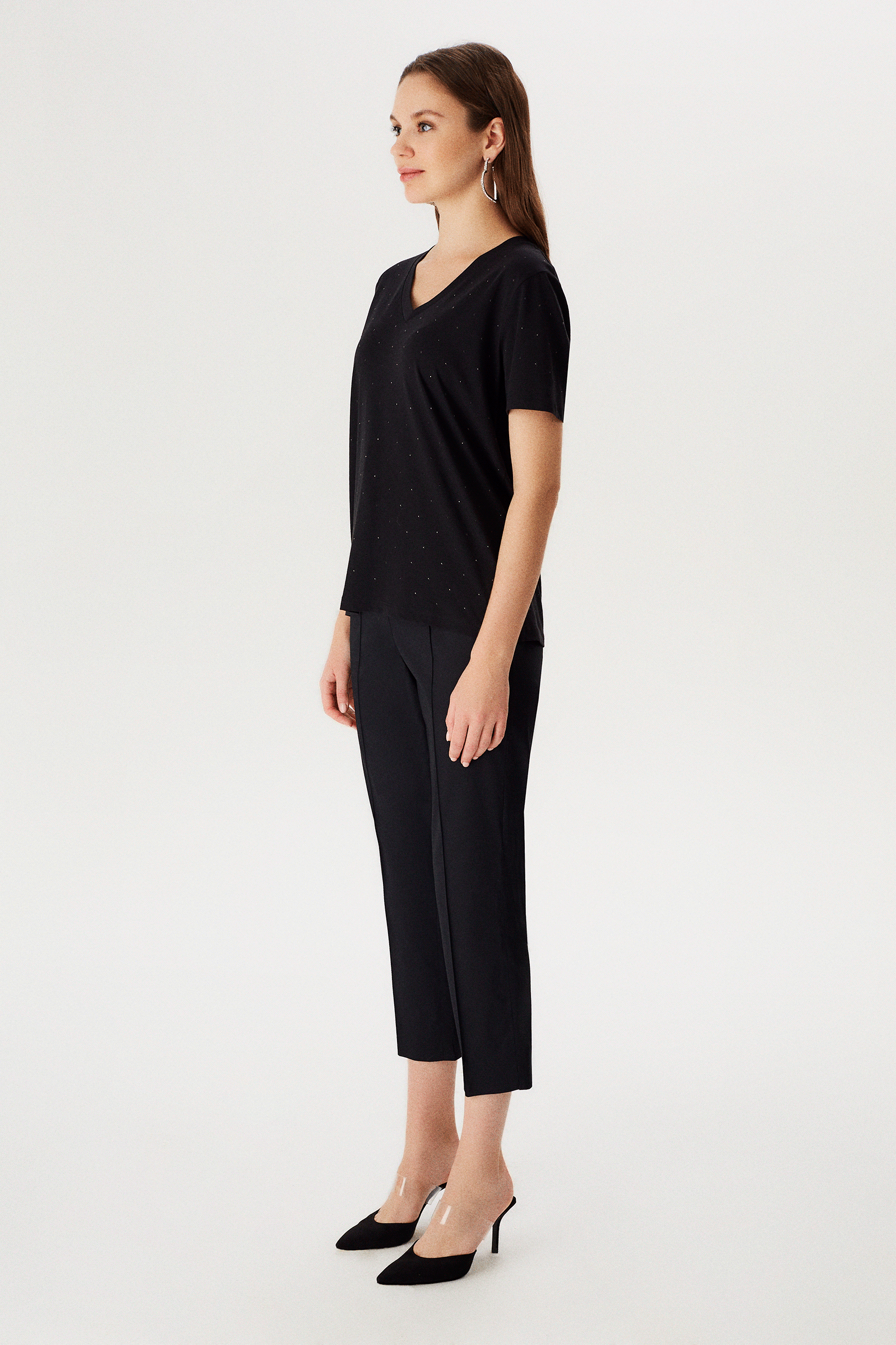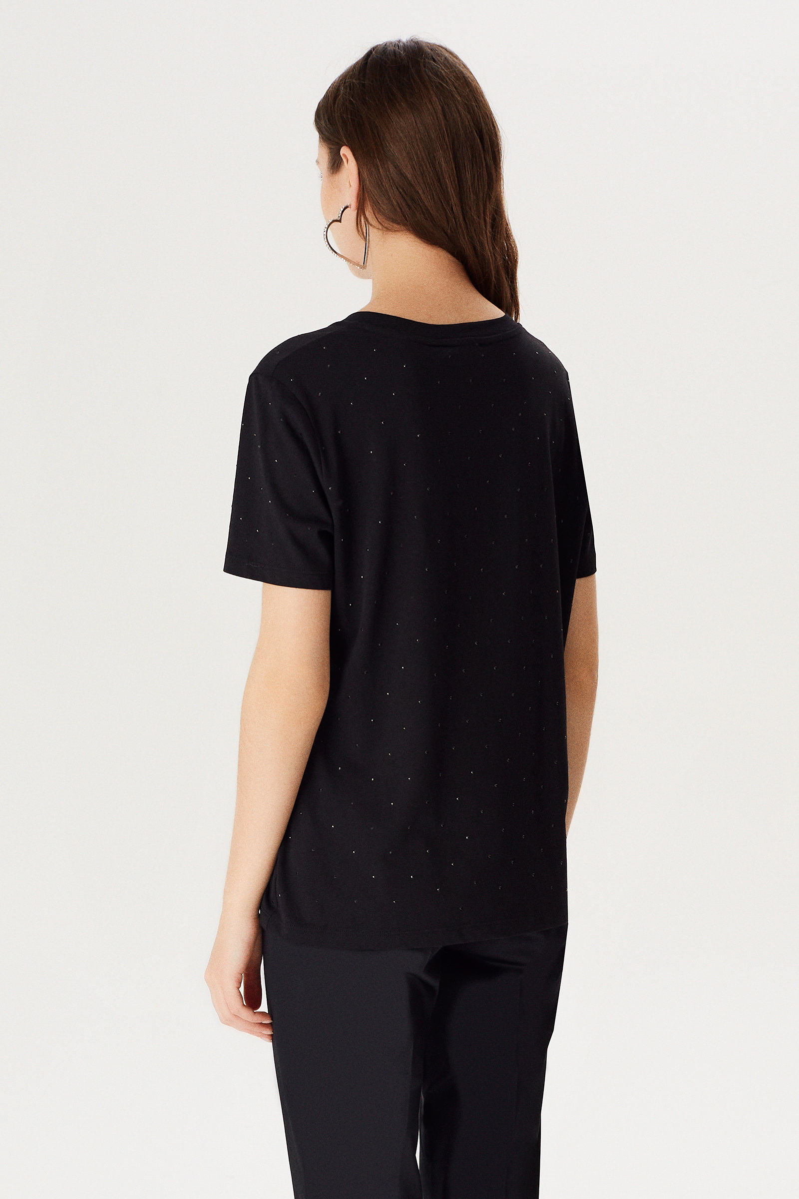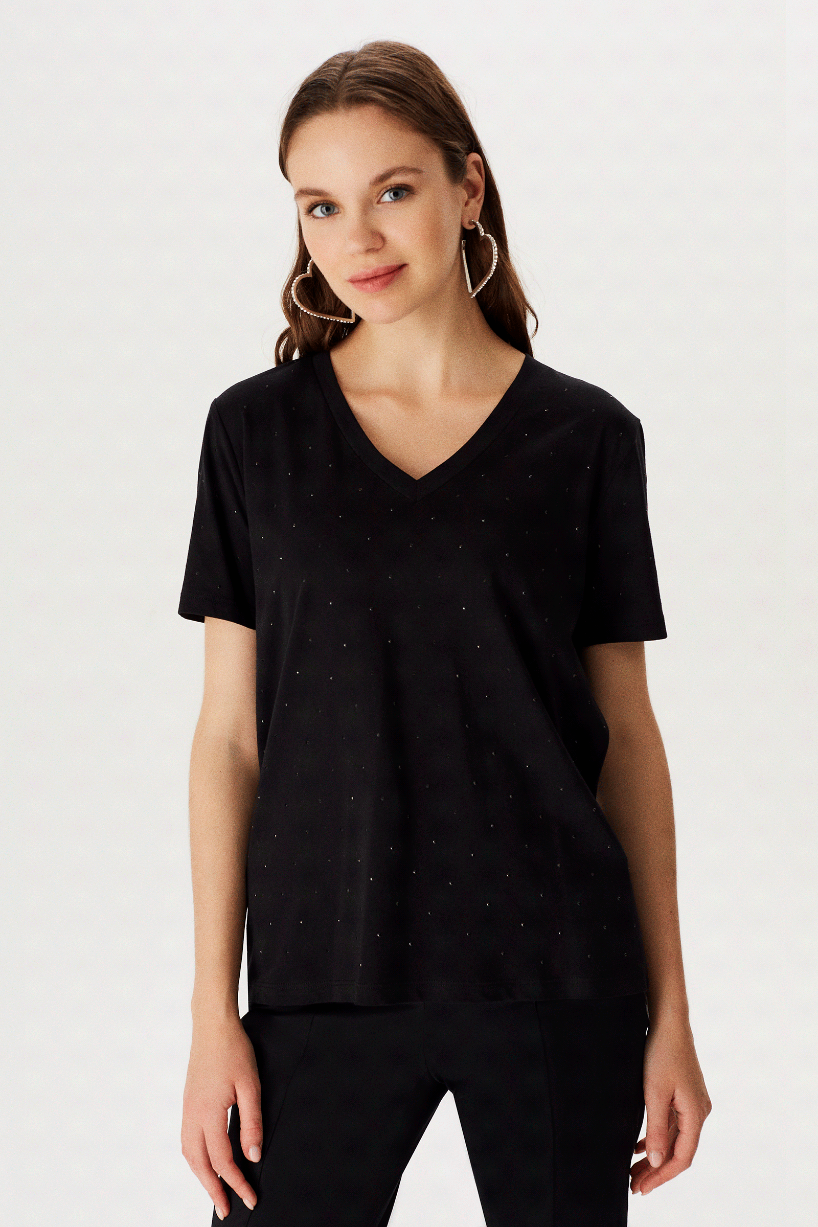 Önü Taşlı V Yakalı T-shirt