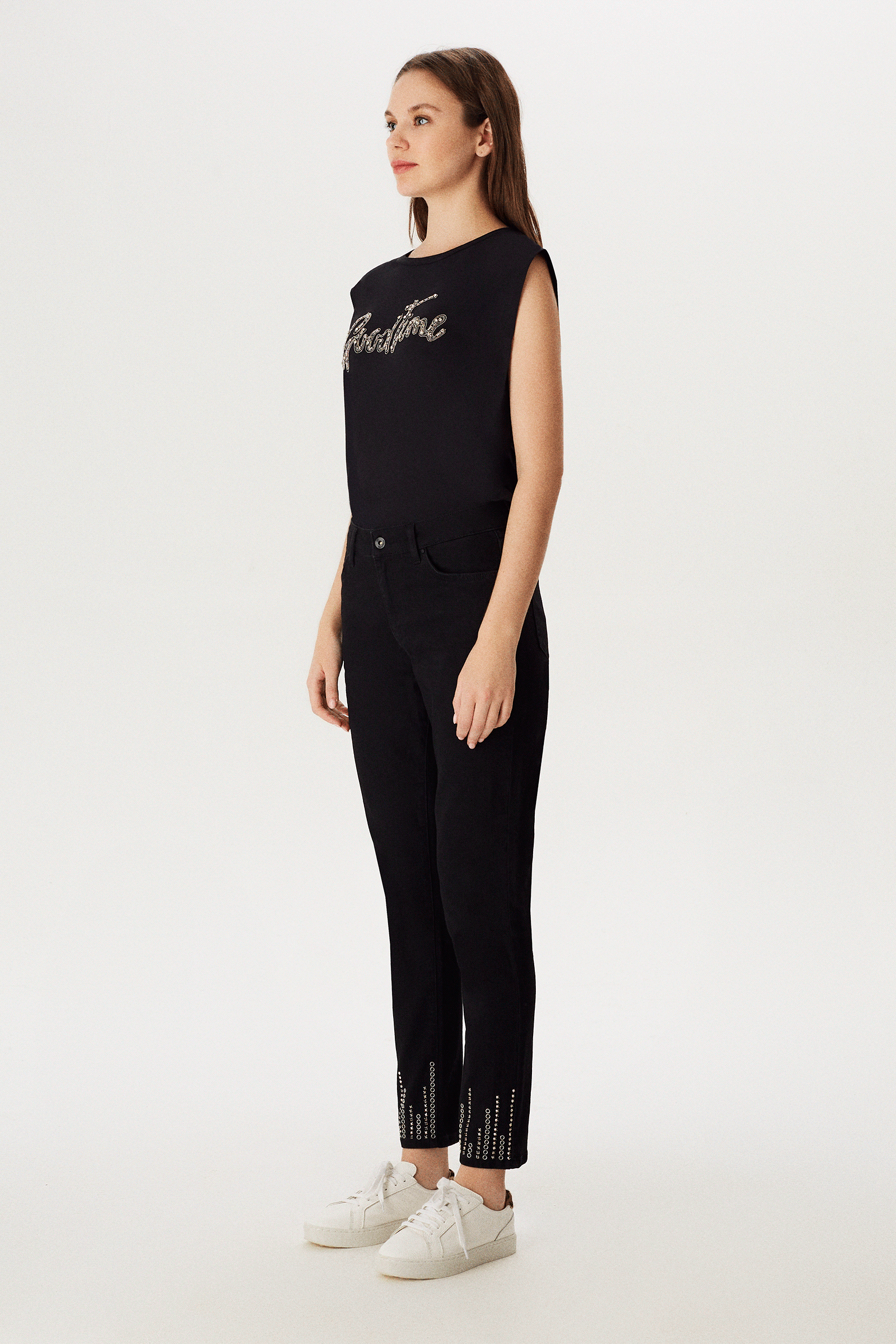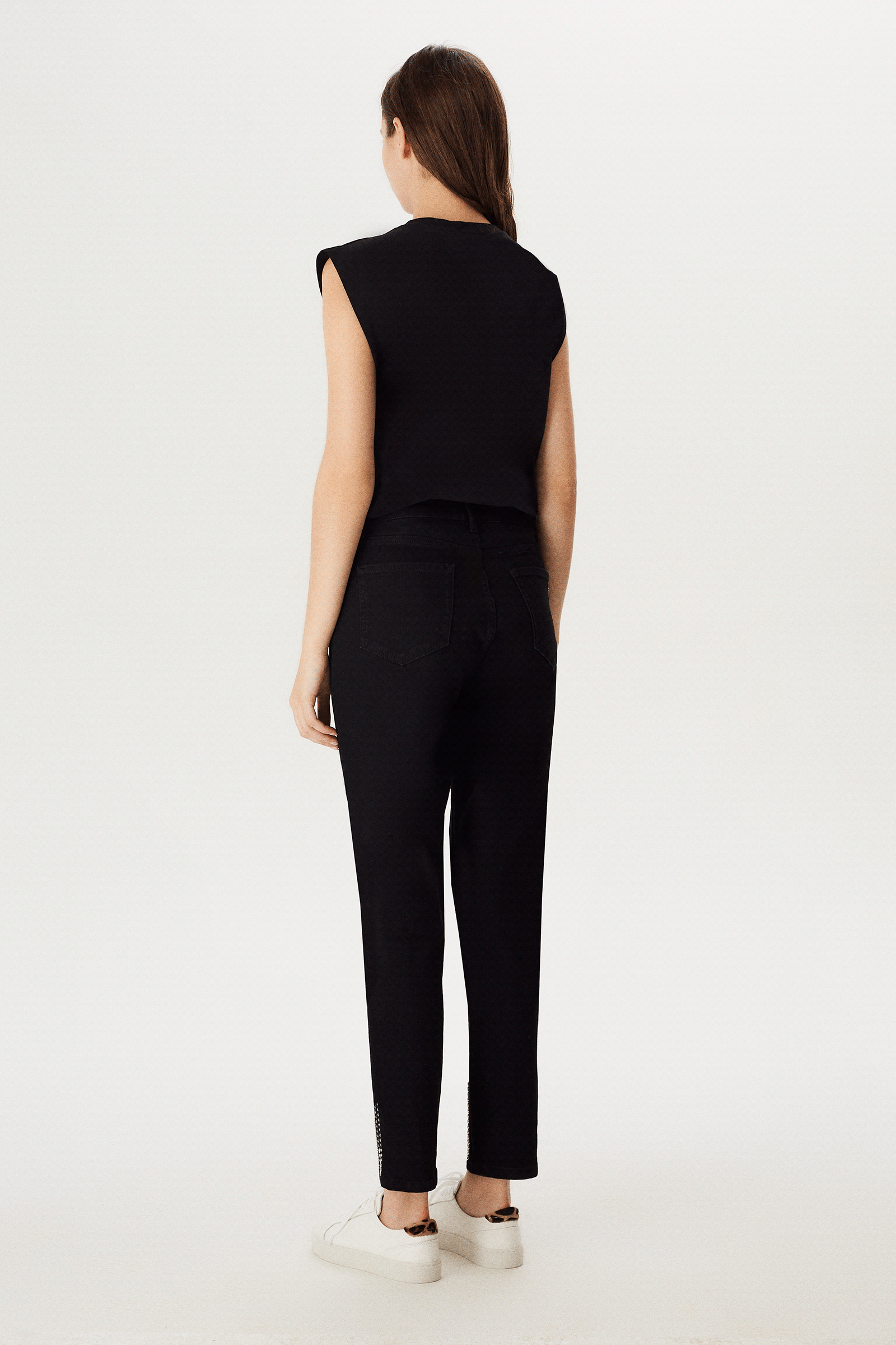 Paça Ucu Zımba Detaylı Dar Paça Denim Pantolon