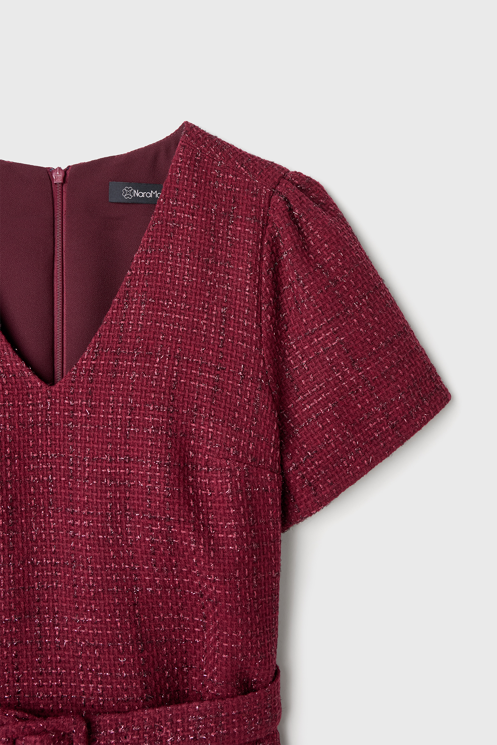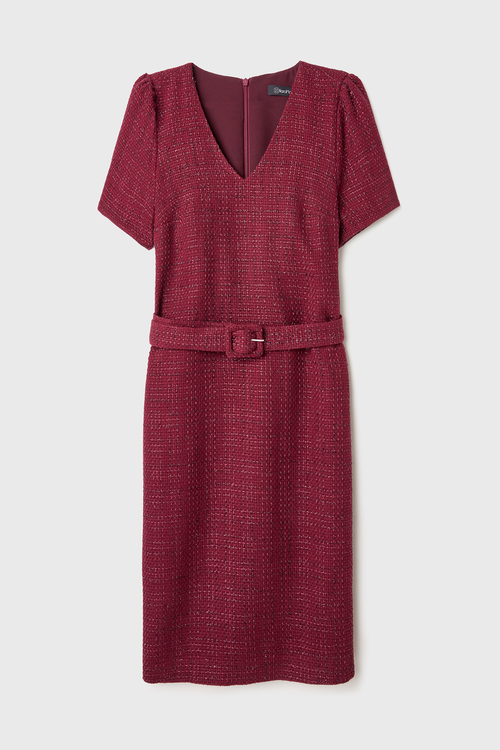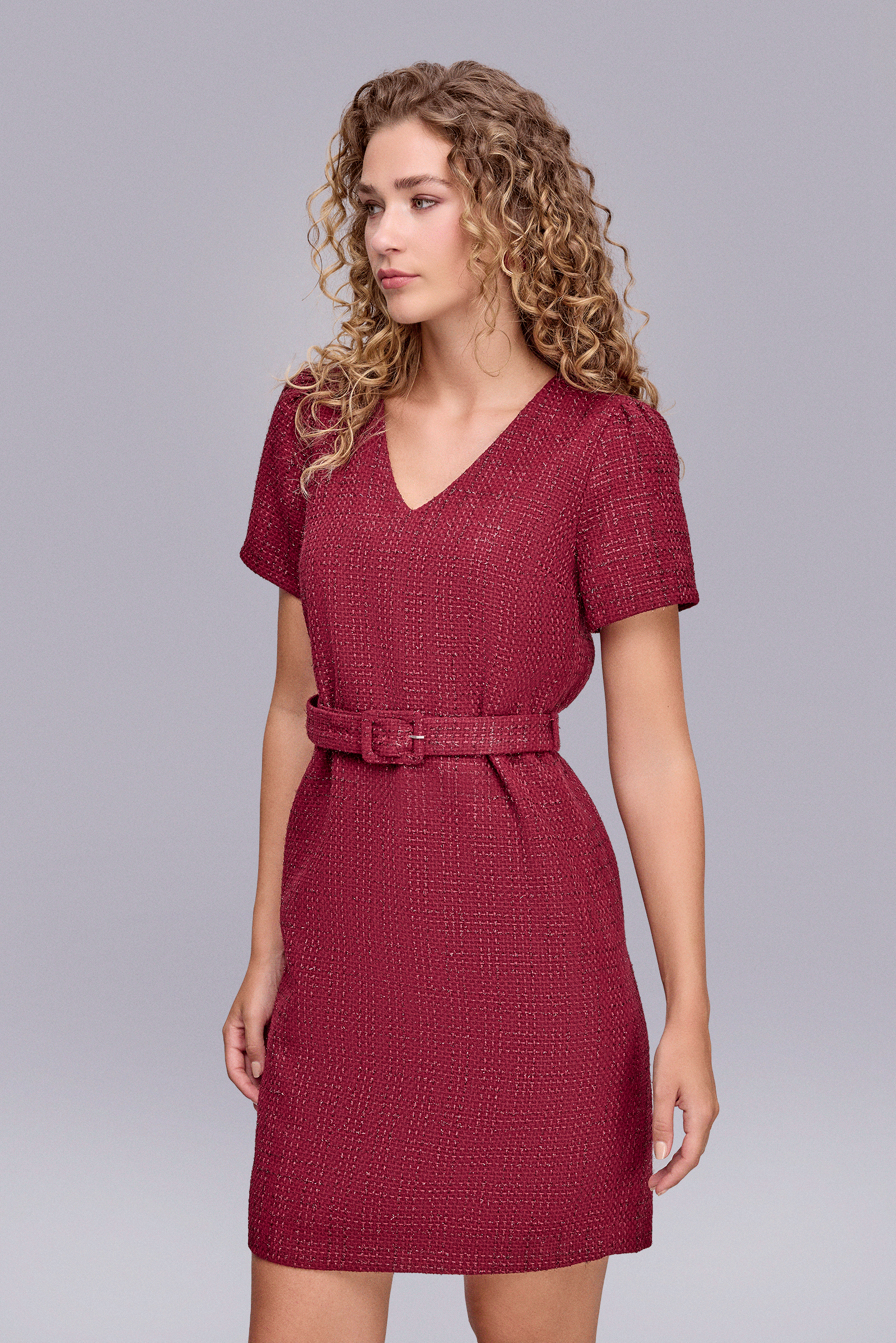 Kemerli Bordo Tüvit Elbise