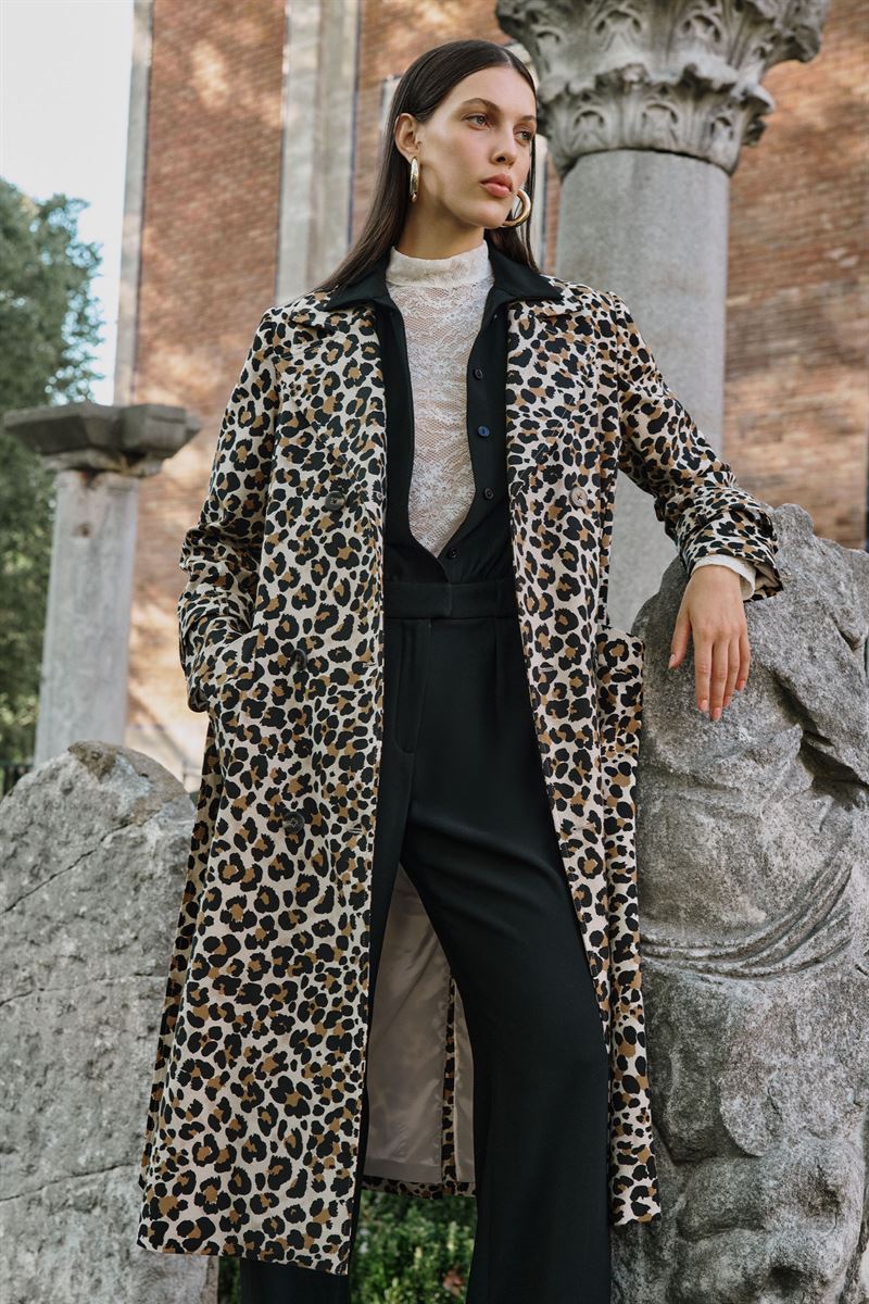Leopar Desen Uzun Trençkot