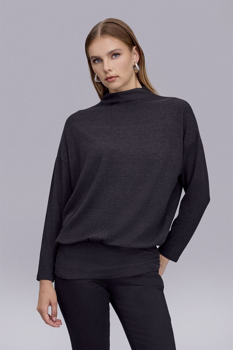 Yakası Burgu Detaylı Antrasit Örme Bluz