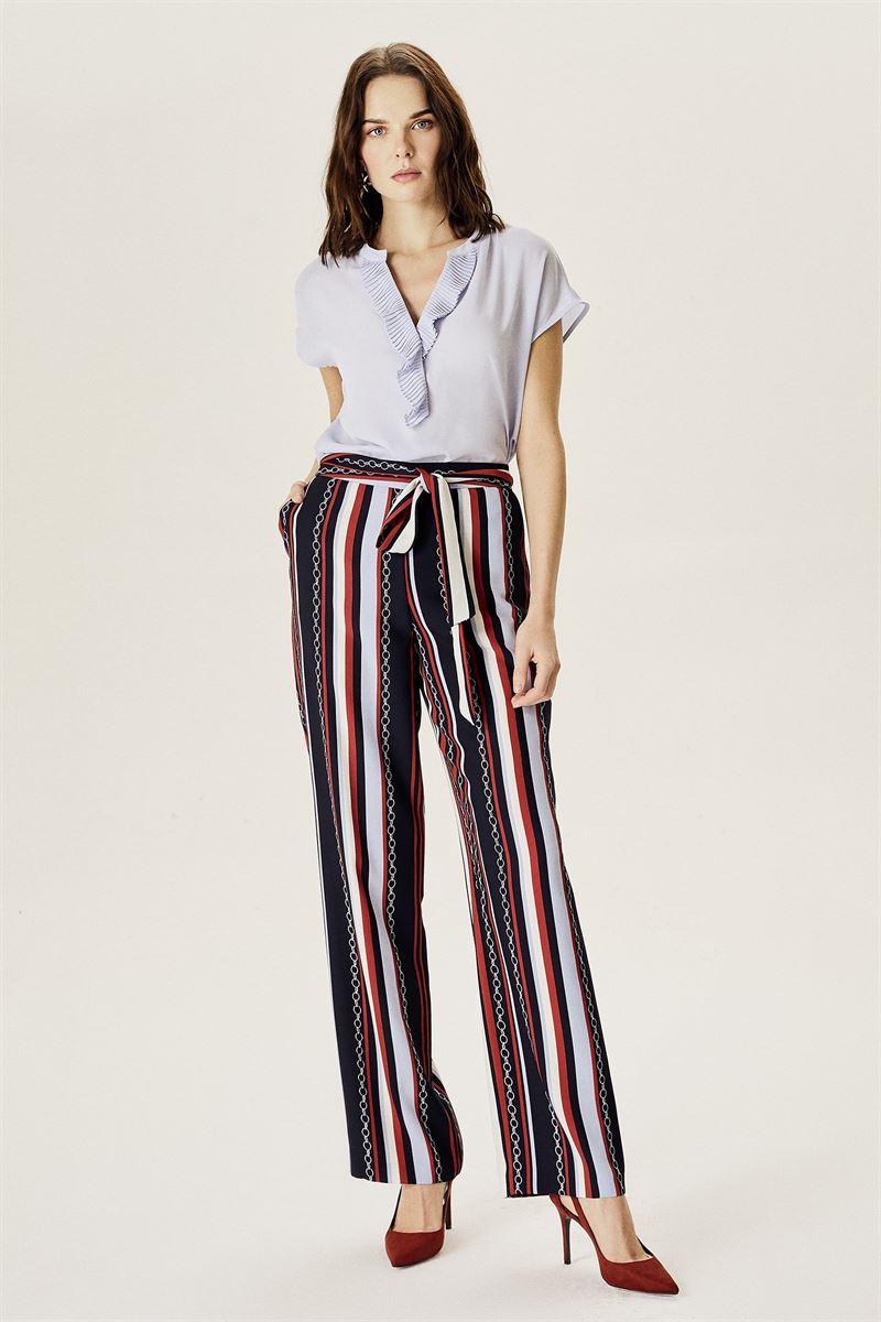 Şerit Aksesuarlı Kelebek Desenli Bluz